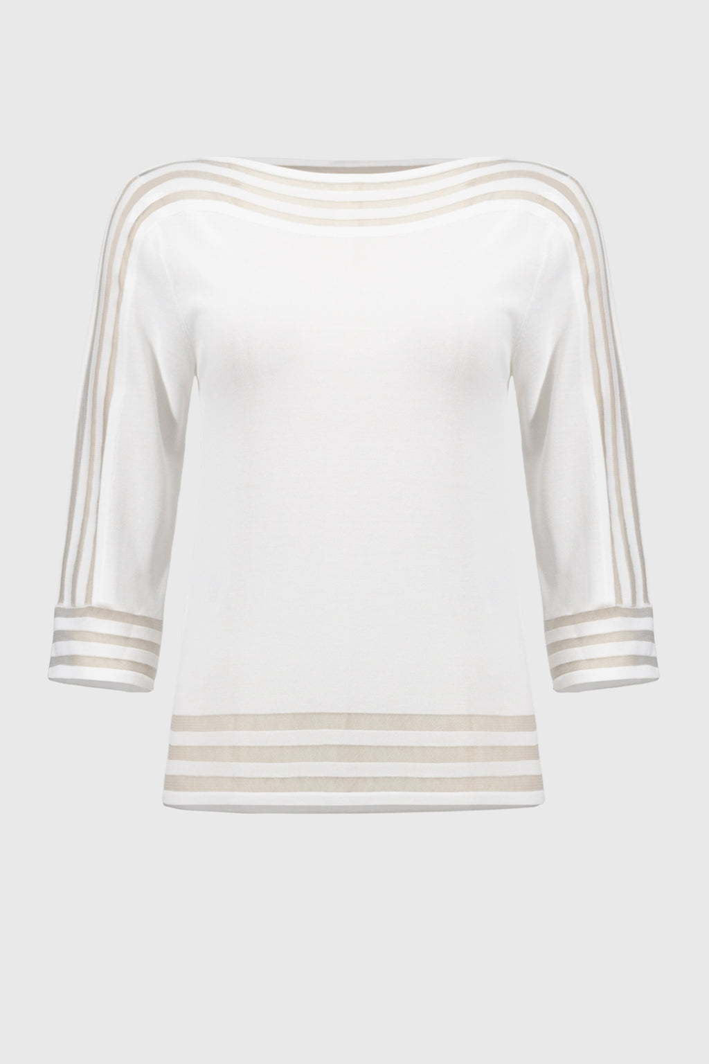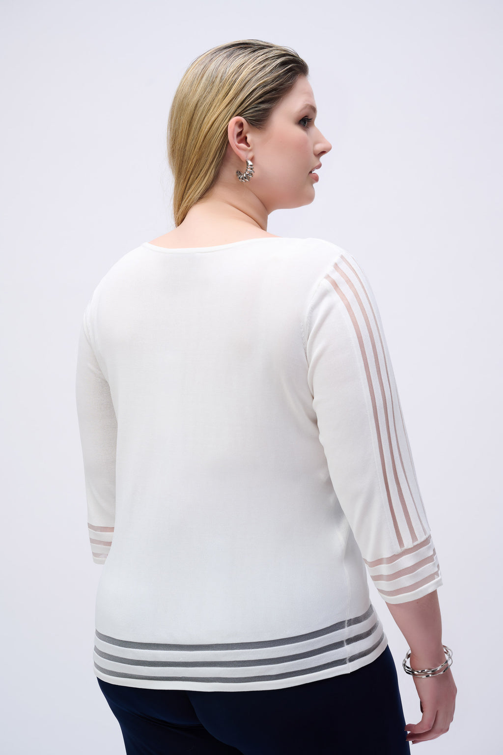 • Yarn mesh stripes at neck, sleeve hem and bottom hem