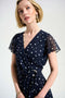 - Wrap neckline with ruffle edge