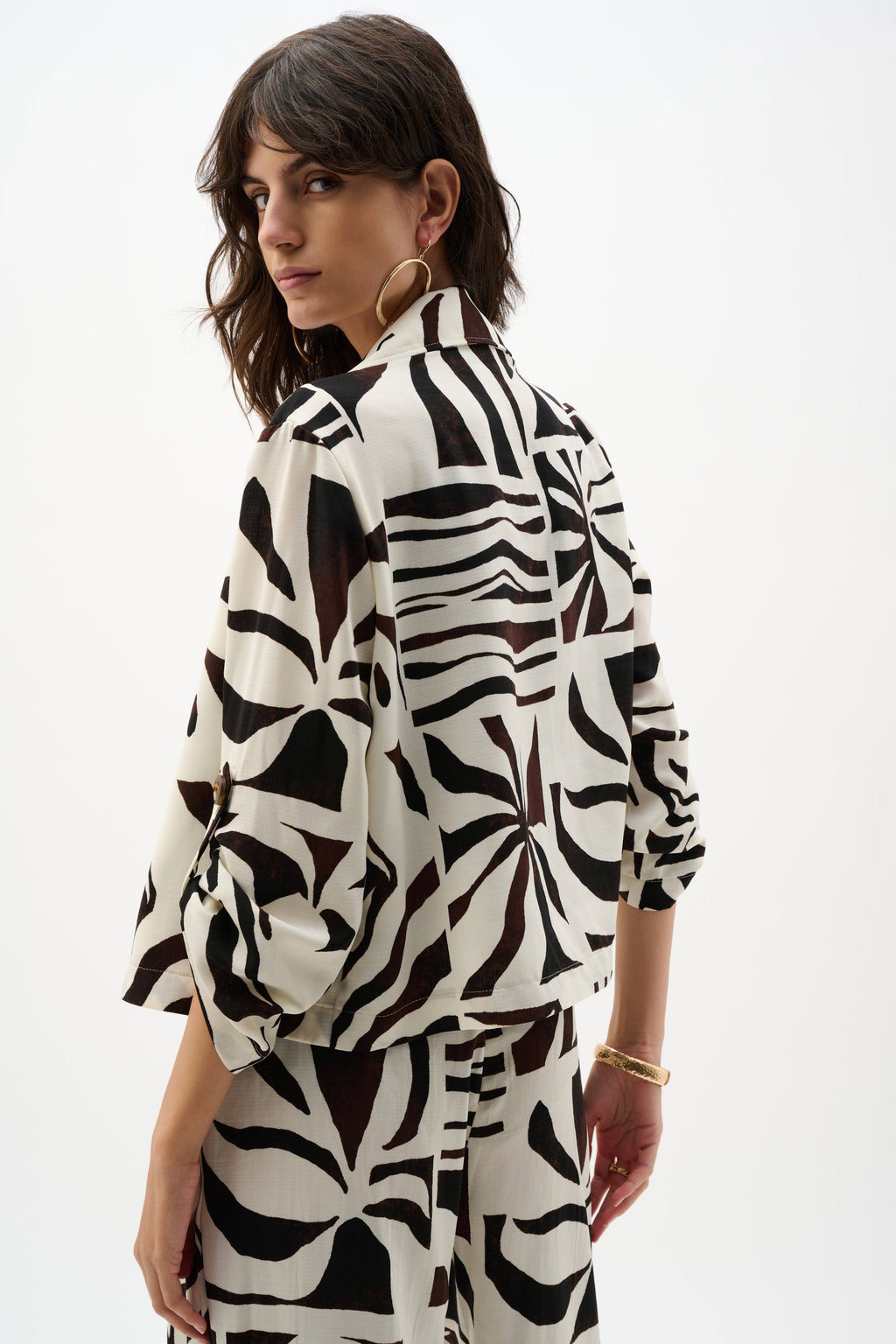- Three-quarter sleeves with shirt tabs