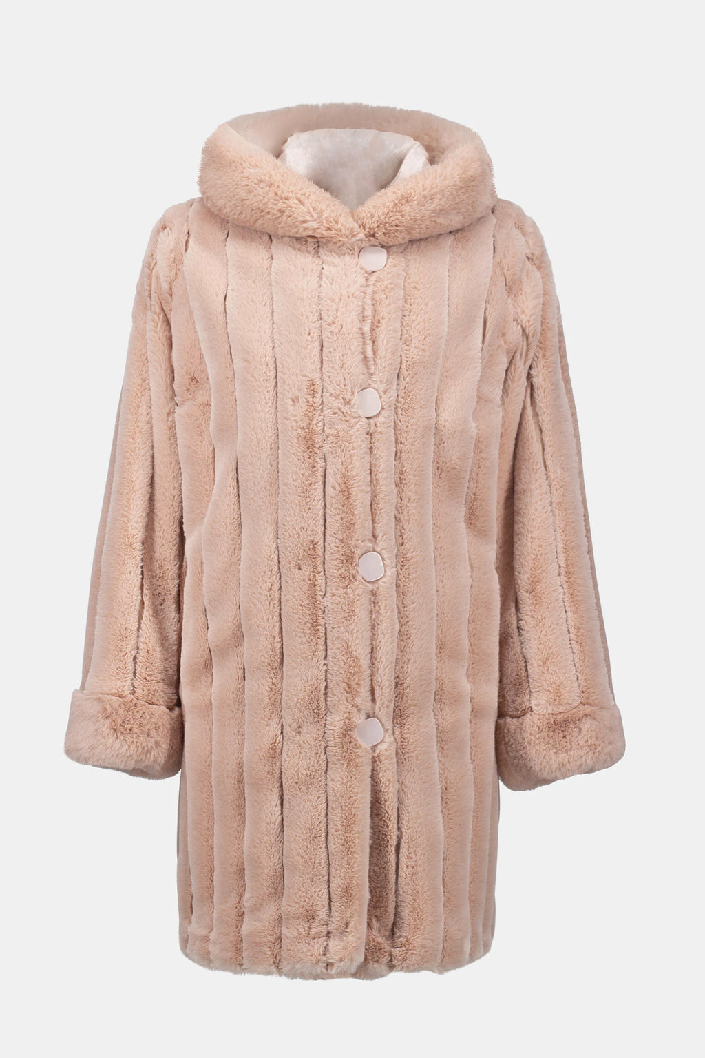 Faux Fur Reversible Hooded Coat - Rose