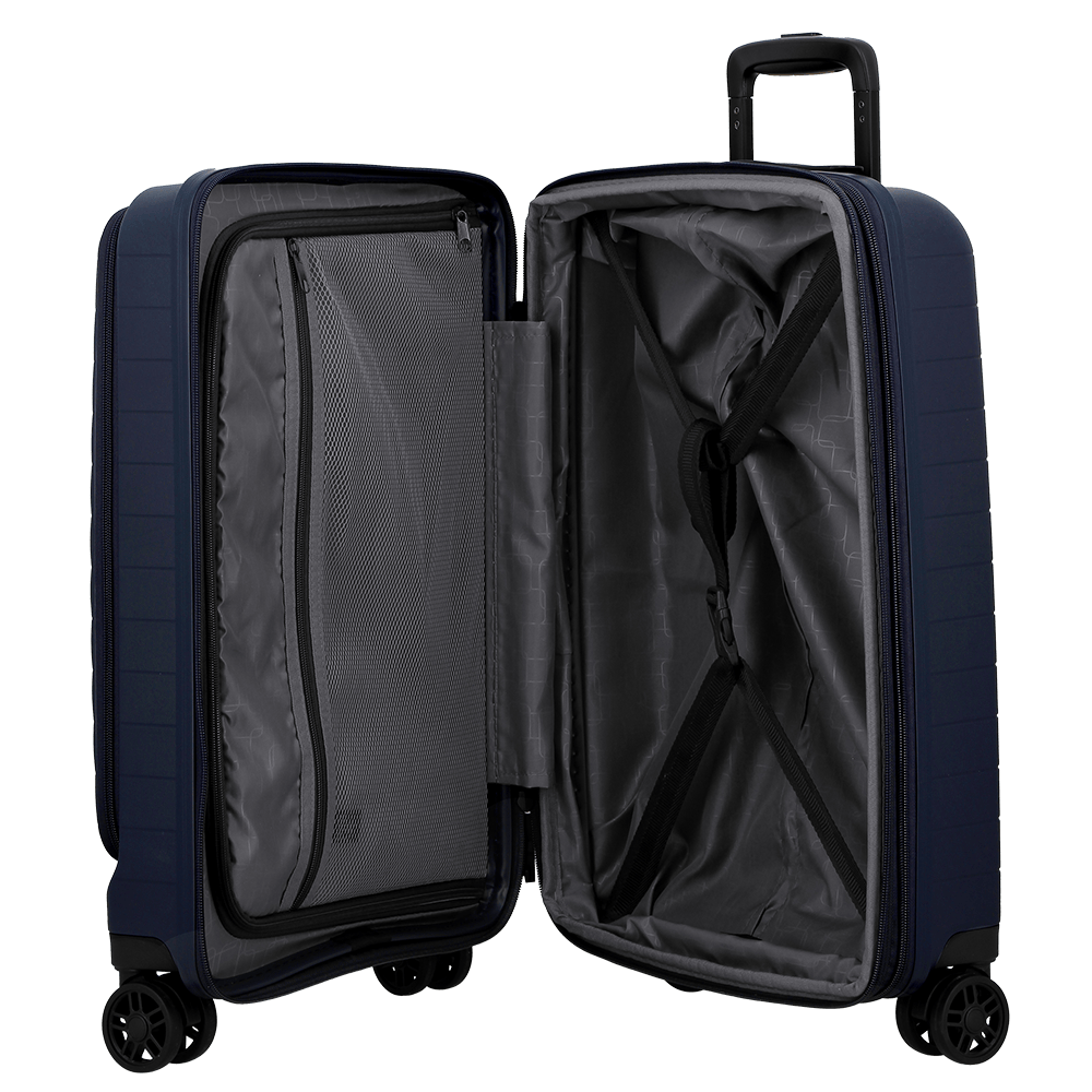 Designed for the discerning business traveller, the Striper 55cm Cabin Case delivers sophisticated luggage solutions in a sleek Navy Blue finish. This intelligent carry-on suitcase accommodates standard cabin dimensions at 55x35x20cm, with an innovative expansion system that increases volume by 20% to 24cm when additional packing space is required. At a lightweight 2.6kg, it preserves your baggage allowance for essentials. The four omnidirectional wheels rotate smoothly with minimal noise, facilitating effortless navigation through airports and transit areas. Built for durability and performance, this case represents a reliable investment for regular business travellers.