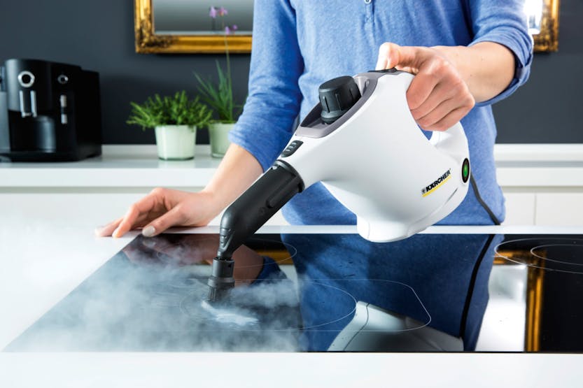Shift dirt using nothing but the power of super-heated steam with the Kärcher SC1 EasyFix steam cleaner, which achieves incredible deep-cleaning results by harnessing the power of tap water. This light and versatile device kills 99.99%* of all common household bacteria without the need for chemicals, making it ideal for allergy sufferers. The SC 1 EasyFix cleans every corner of your home, achieving sparkling results with no scrubbing required. The EasyFix floor tool helps you deep clean tiles, stone, wood and laminate floors, effortlessly, while you can also use this device to tackle tough oven grease, limescale and mould in the bathroom. Perfect for performing all kinds of cleaning tasks around the home, this device comes with a multifunctional accessory pack. It's easy to change cloths without coming into contact with the dirt, thanks to the EasyFix floor tool, while the compact design means it won't take up much space in the cupboard or garage.