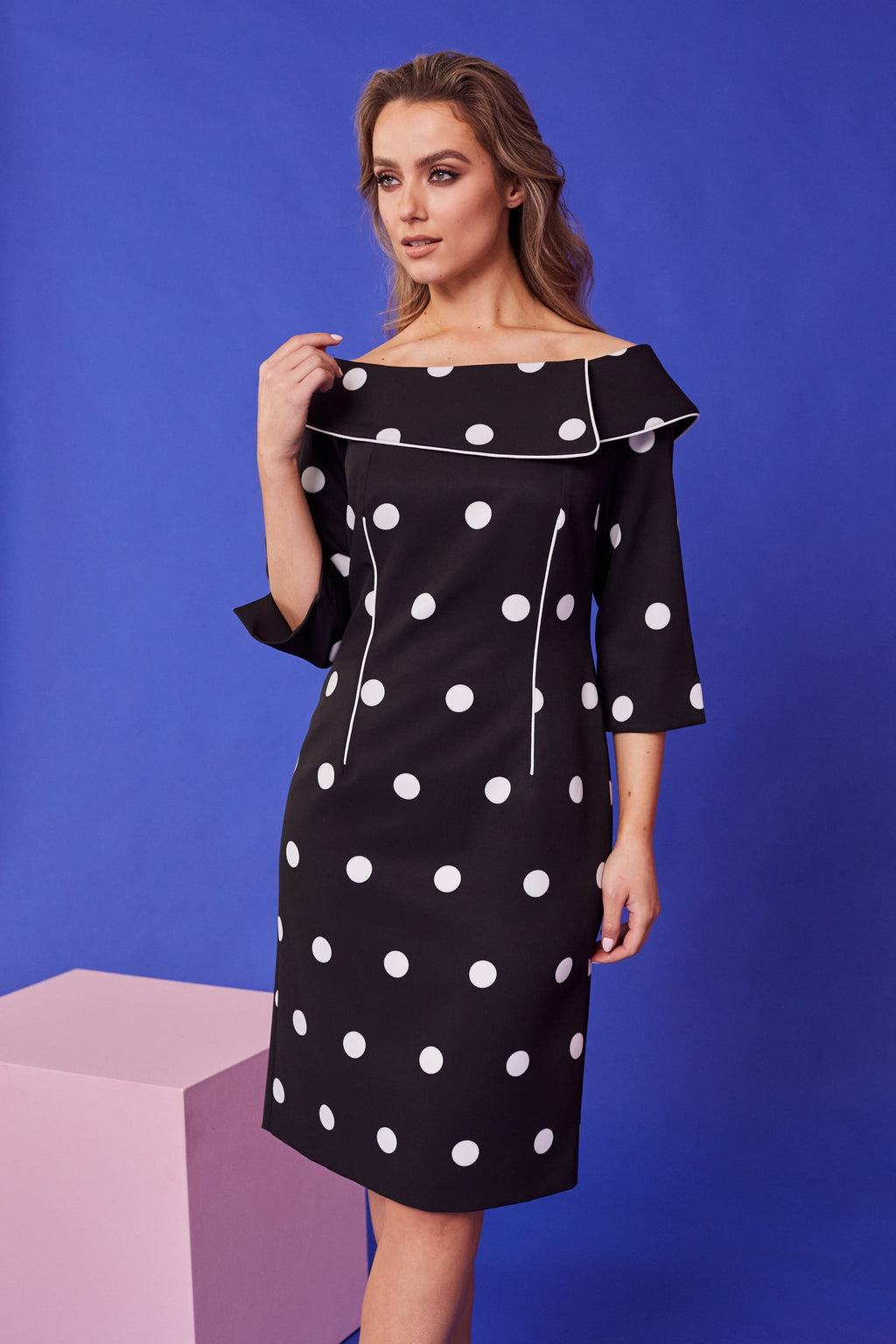 - All over polka dot print.