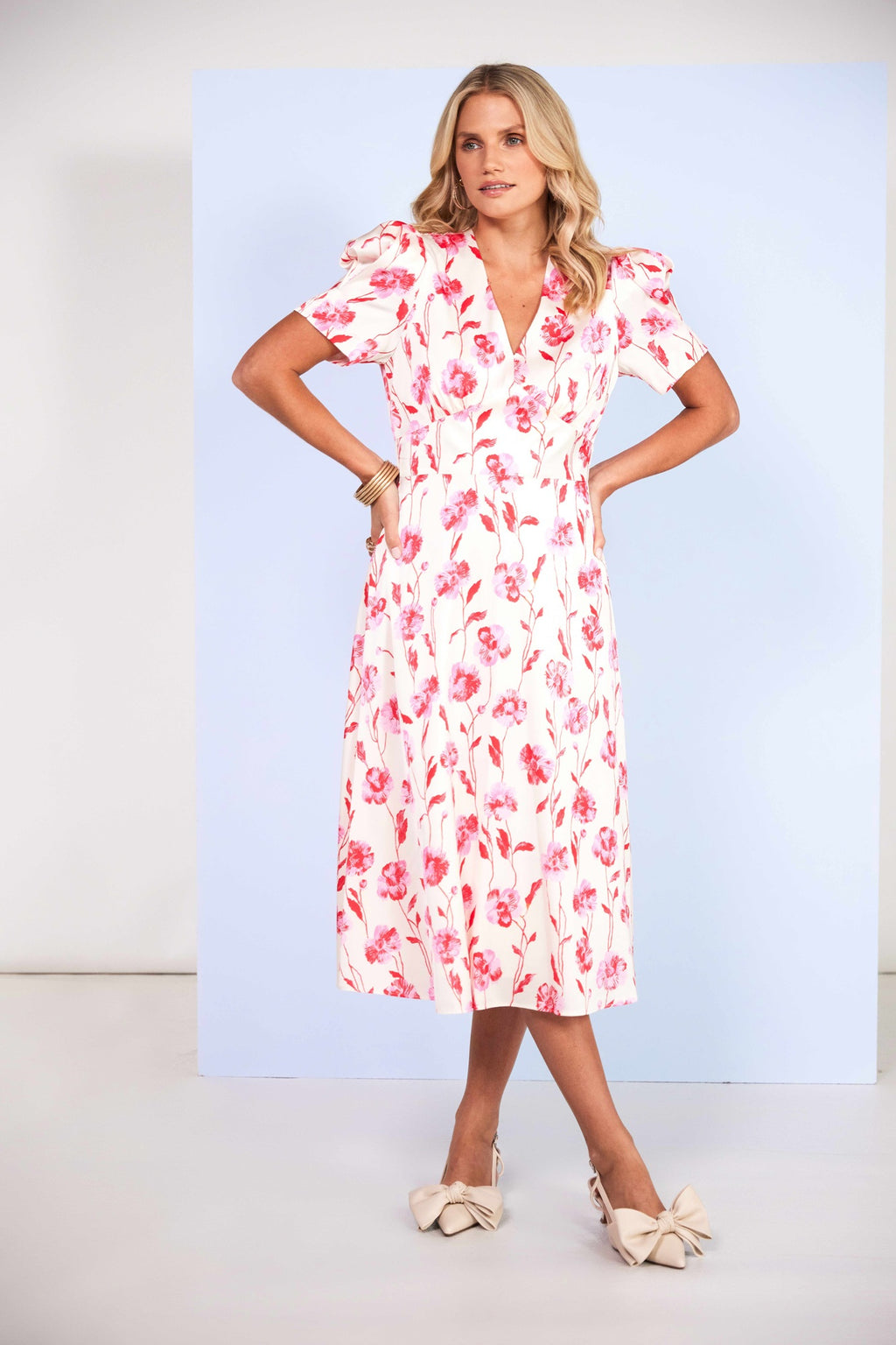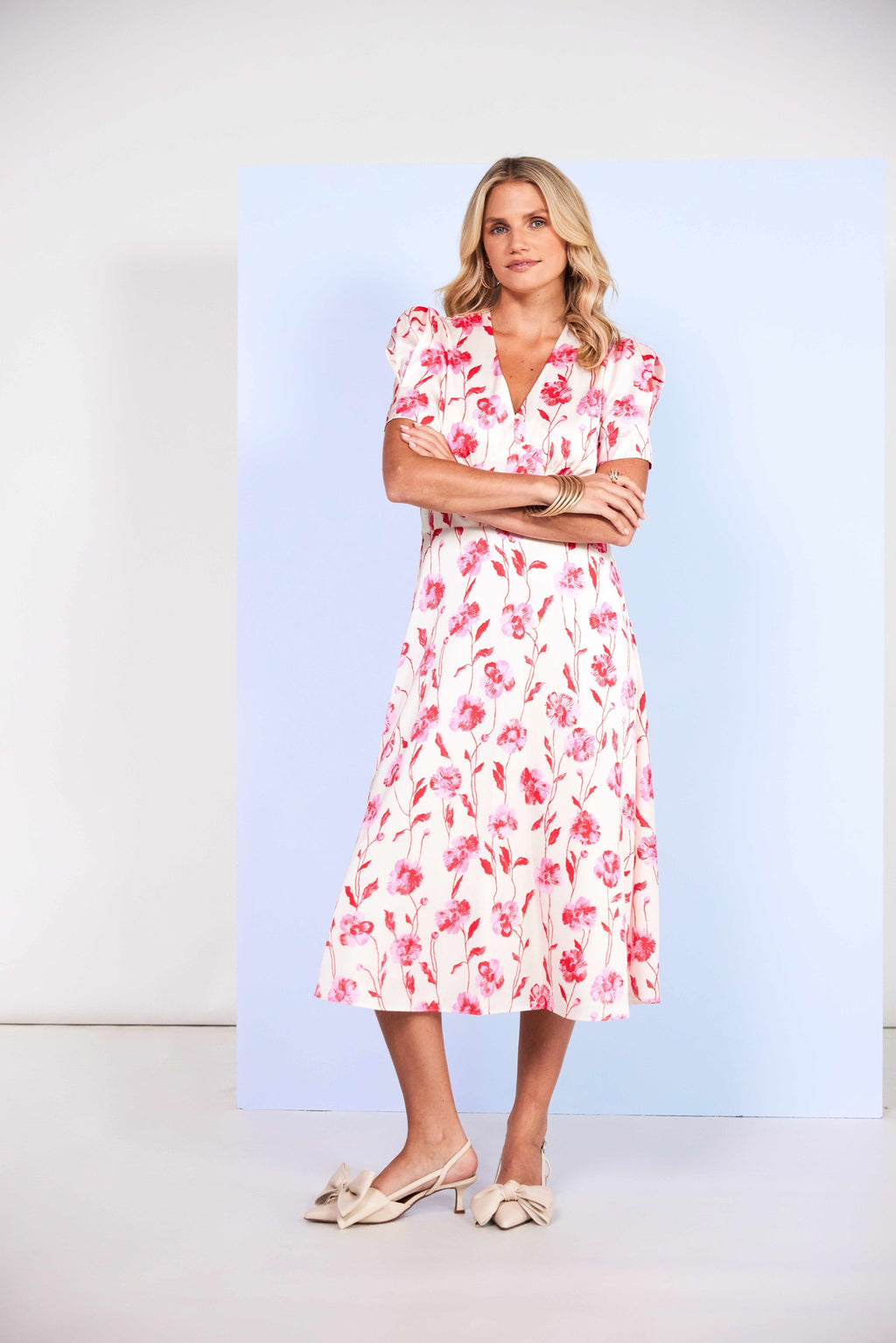 Pleated Sleeve Print Dress - Vanilla & Poppy