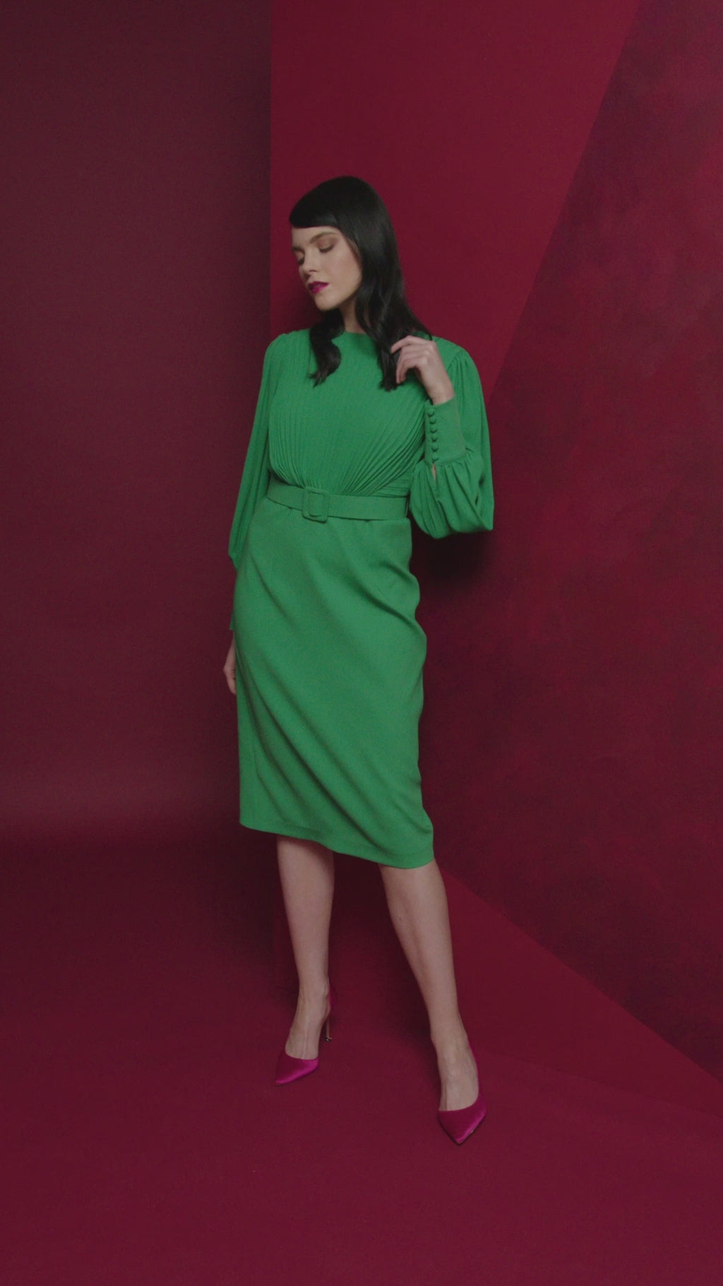 Pleated Top & Belt Dress - Kelly Green