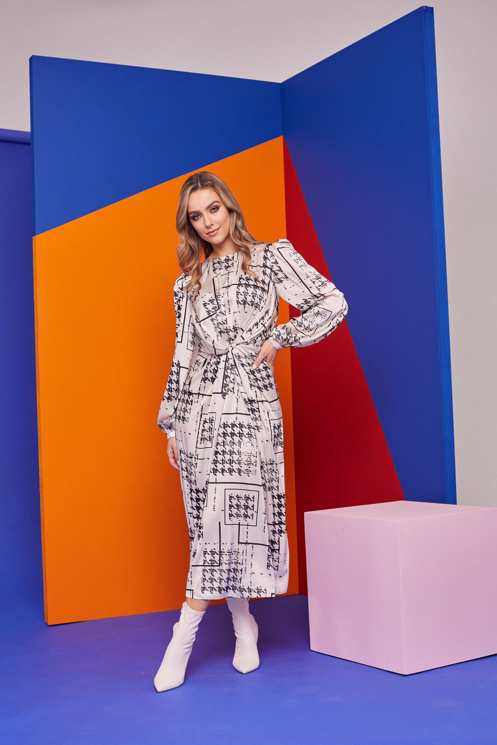 • All over abstract print.