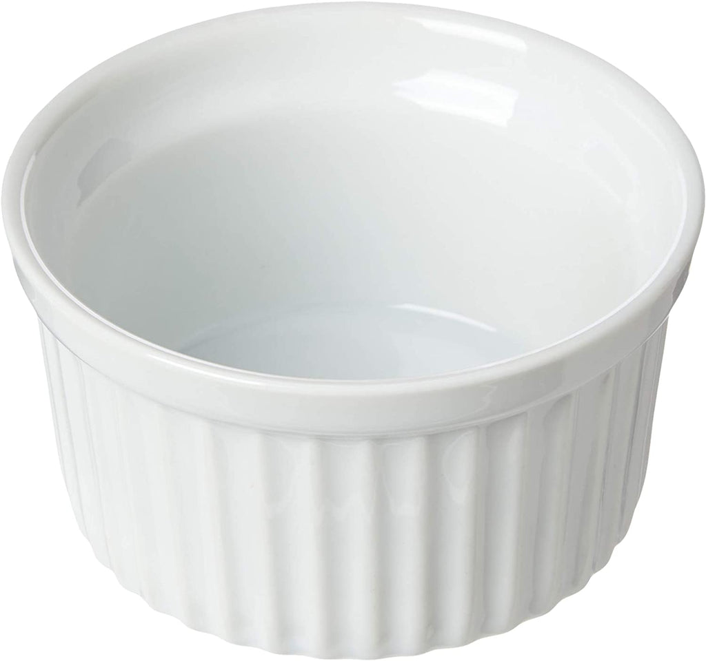 Classic porcelain individual ramekin with fluted exterior and ridged rim interior. Use for individual desserts and nibbles.