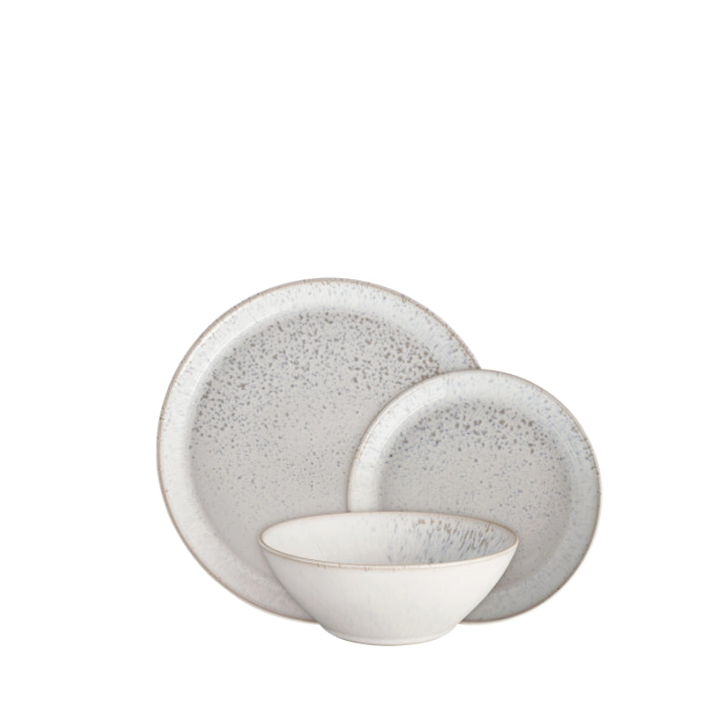 The 12pc tableware set brings together 4 Dinner Plates, 4 Small Plates and 4 Cereal Bowls, all designed with practically- shaped features and the unique freckling glaze. The sets are both beautiful and versatile so can be used for your everyday set or used separately for other occasions, a set to start off your new collection or add a few new place setting items to your existing items.