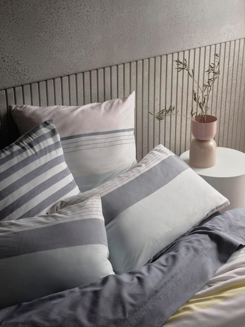 Offering a compellingly fluid mixture of the feminine and the masculine, the Knolls duvet cover design features bold, broad stripes mixed with fine, delicate lines in a carefully selected mix of seasonal colours.