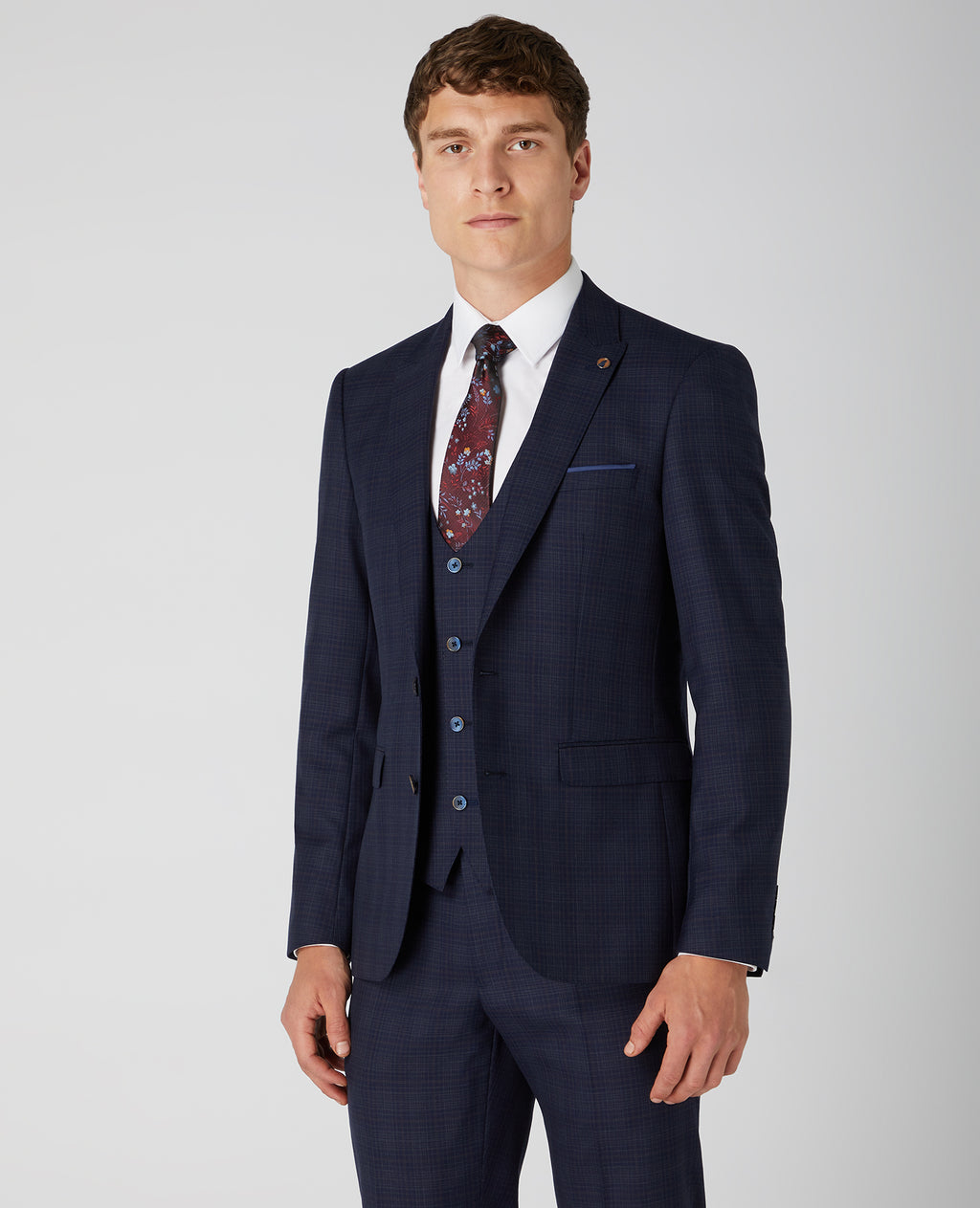 - Slim notched lapel.