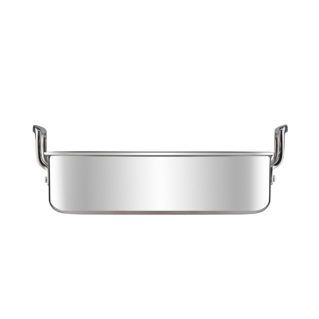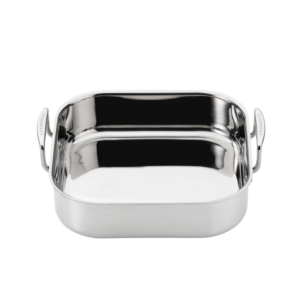 The 3-ply Stainless Steel 26cm Square Roaster is versatile, practical and ideal for everyday cooking. Perfect for sweet and savoury traybakes, roasting meat, fish and vegetables, and for delicious baked dessets. The upright handles make lifting easier and more comfortable. Can be used in the oven and on the hob. The Stylish design and superb cooking results are at the heart of Le Creuset's 3-ply Stainless Steel cookware.r