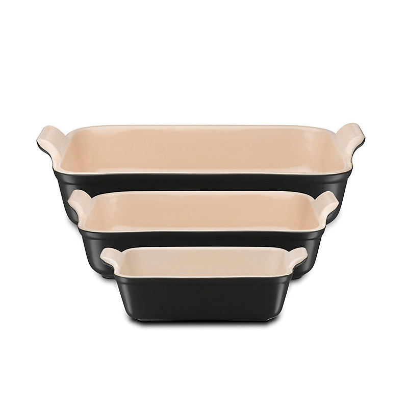 The heritage stoneware rectangular dishes are a kitchen essential and a versatile solution for everyday cooking. The dishes are designed with easy grip scalloped handles and deep side walls for ample cooking space. They come in three useful sizes to suit a variety of recipes from marinating and roasting to baking and serving.