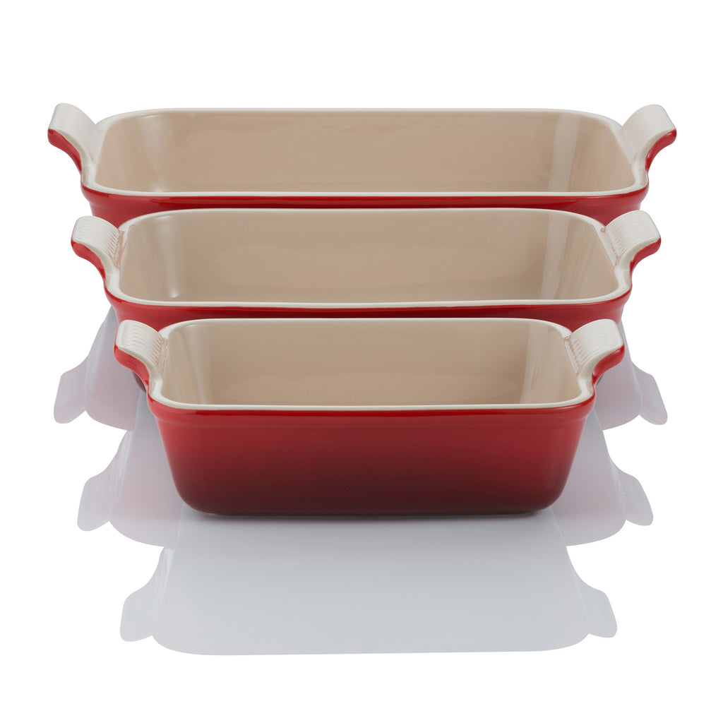The heritage stoneware rectangular dishes are a kitchen essential and a versatile solution for everyday cooking. The dishes are designed with easy grip scalloped handles and deep side walls for ample cooking space. They come in three useful sizes to suit a variety of recipes from marinating and roasting to baking and serving.