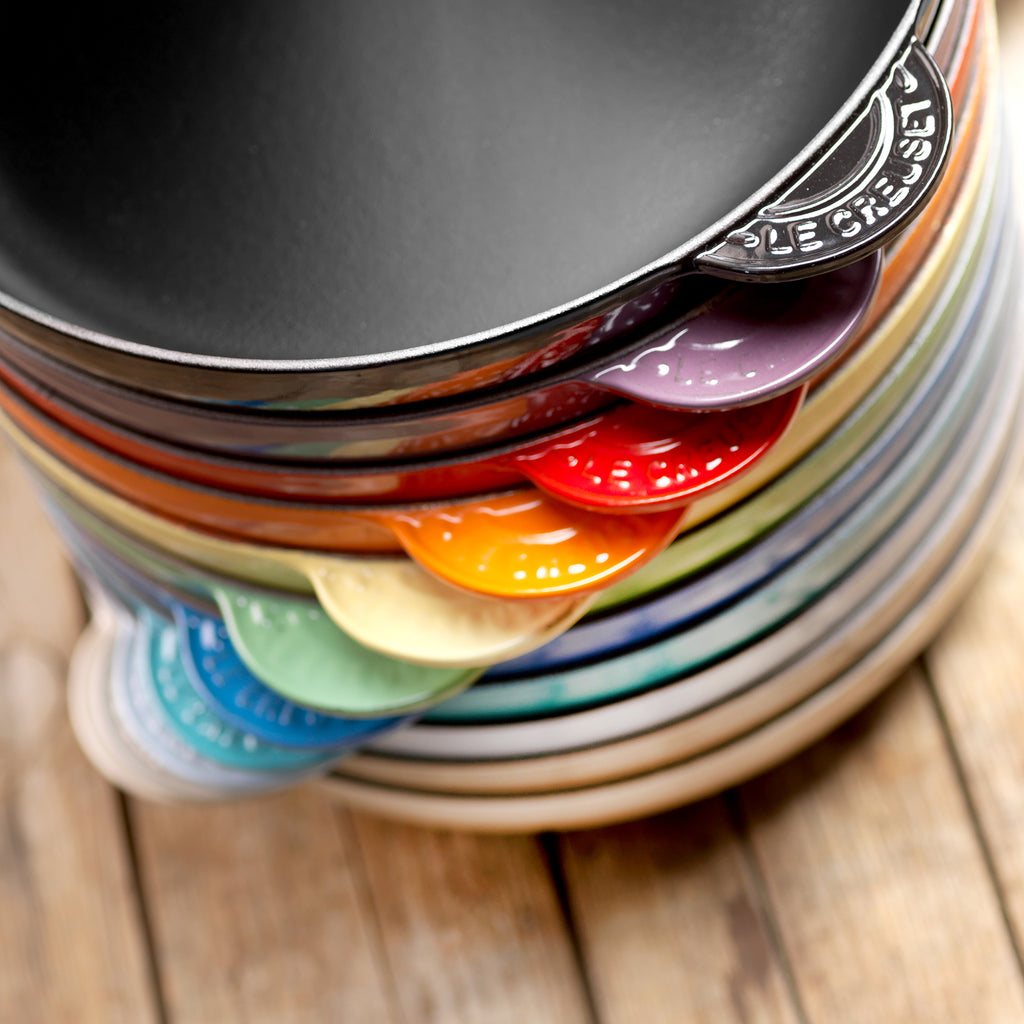The Frying Pans are coated with Le Creuset’s specialist enamel finish. Very durable and easy to clean, the enamel interior has been especially designed to protect the pan (no seasoning is required) and for high surface heat use. It is not a non-stick surface but over time will behave like one as it develops a natural patina that is ideal for searing, browning and frying with the advantage of being extremely long-lasting and resistant to wear.