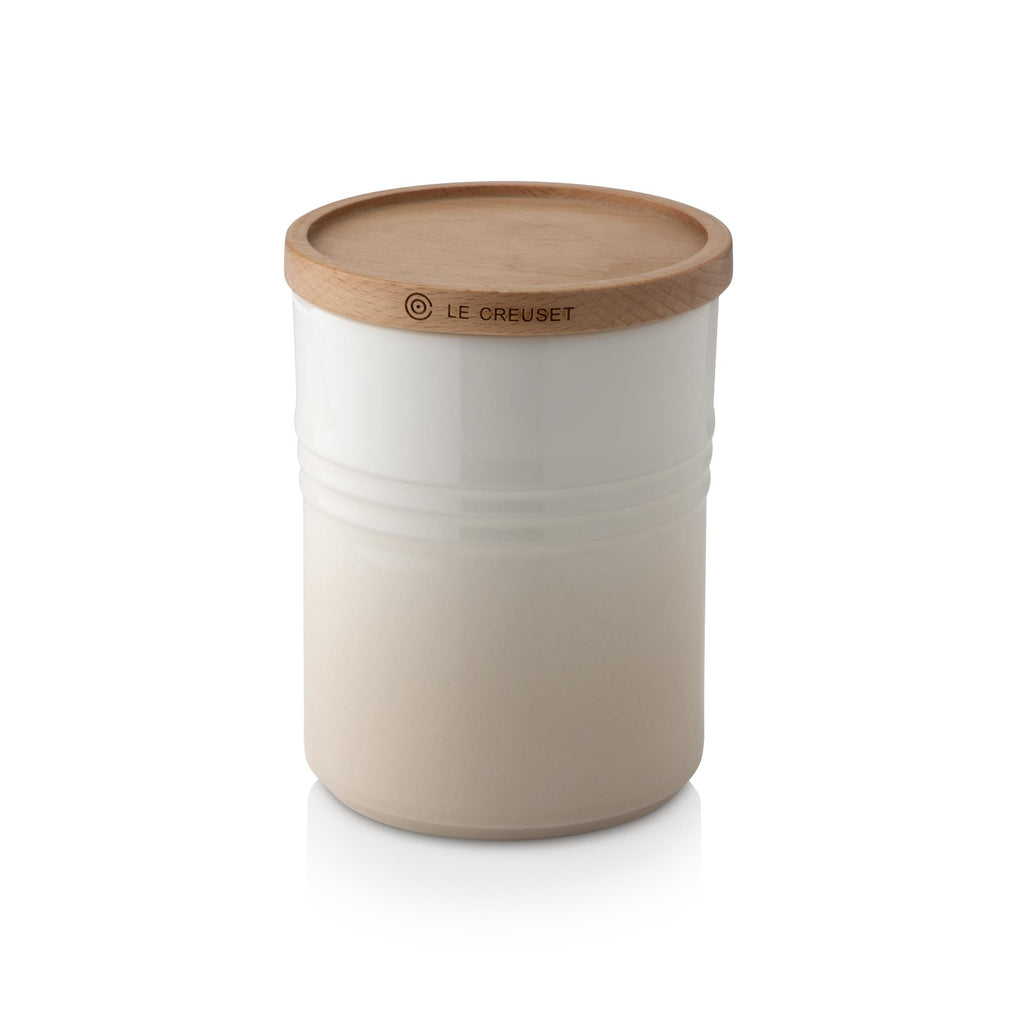 Medium Stoneware Storage Jar With Wooden Lid - Meringue