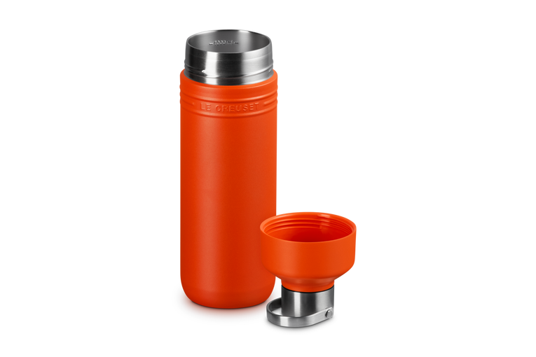 This 1L travel bottle uses advanced double-wall vacuum insulation technology with a copper core, ensuring your beverages maintain their ideal temperature throughout the day. The ingenious design features a versatile dual-opening system – a smaller spout delivers a smooth drinking experience, while the larger opening accommodates ice cubes and enables thorough cleaning.