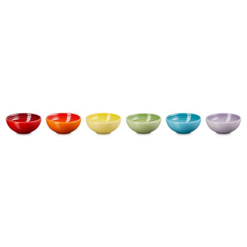 The Le Creuset Rainbow Set of 6 Pinch Bowls are perfect for keeping close by with servings of sea salt, pepper and spices while cooking for convenience.