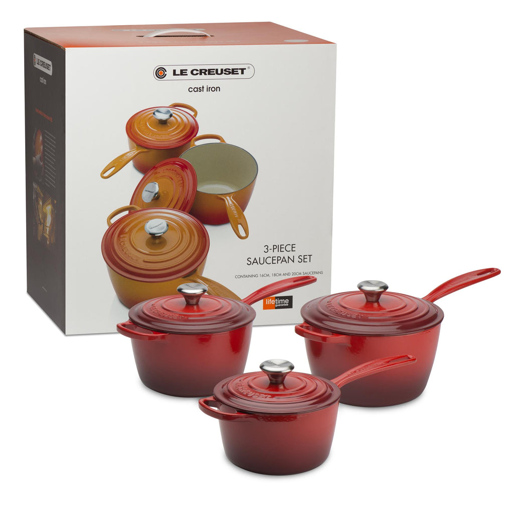 Set Includes: 16cm Saucepan, 18cm Saucepan, 20cm Saucepan.