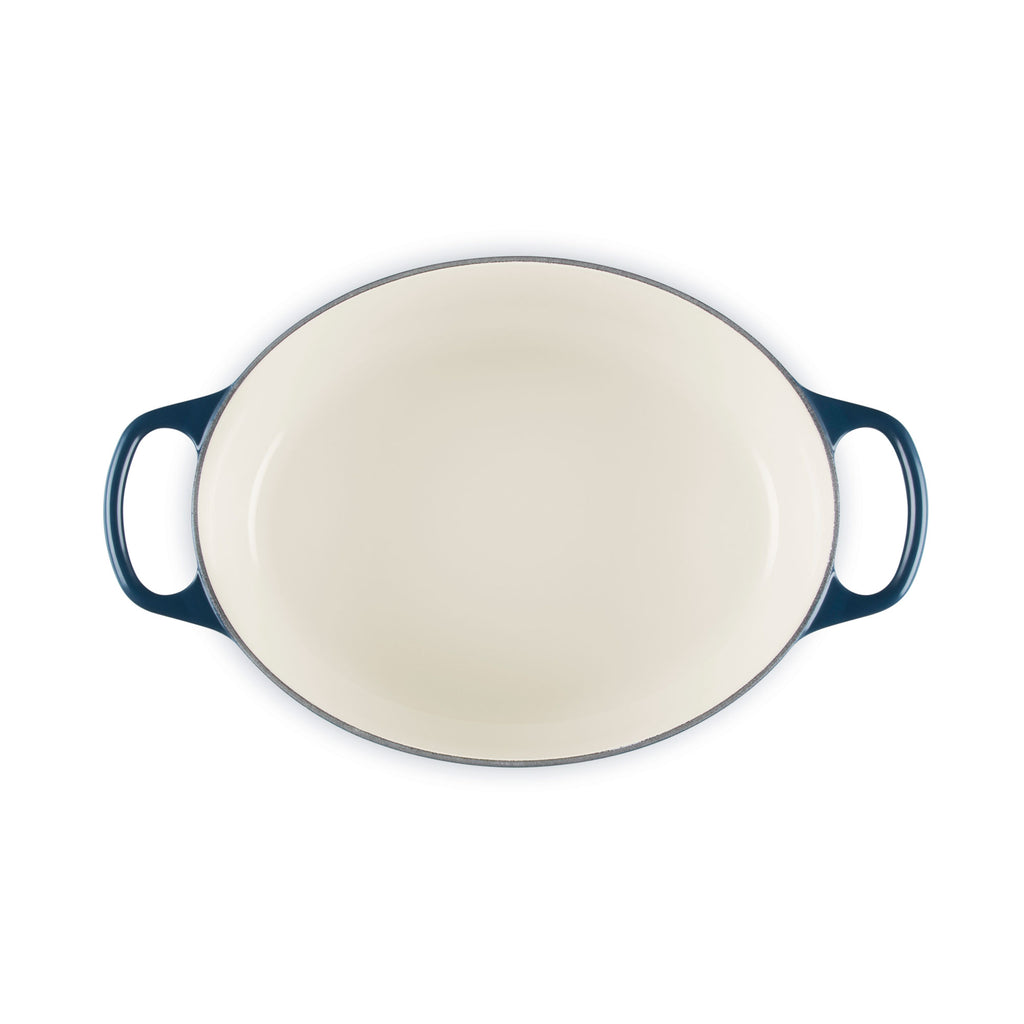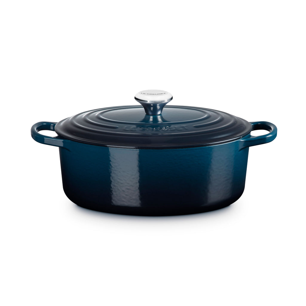 Perfect for longer cuts of meat. Try roasting a chicken with the lid on for a succulent bird that falls off the bone and keeps your oven clean in the process. As versatile as the round casserole, the oval cast iron casserole is also large enough to roast a whole leg of lamb and narrow enough to leave extra space in the oven for the trimmings. Now Le Creuset is proud to introduce the new Signature Oval Casserole. Suitable for use on all hob types, including induction, and in the oven, the casserole makes a perfect serving dish too as cast iron keeps food warmer for longer at the table. Individually cast in sand molds and hand crafted at the original French foundry since 1925, Le Creuset casserole dishes are protected by a Lifetime Guarantee for total peace of mind. Each casserole comes with a signature stainless steel knob ergonomically designed for a much better grip and easy lifting - even when wearing bulky oven gloves. Stylish and long lasting, they add additional shine to Le Creuset Cast Iron Casseroles and are safe at any oven temperature.