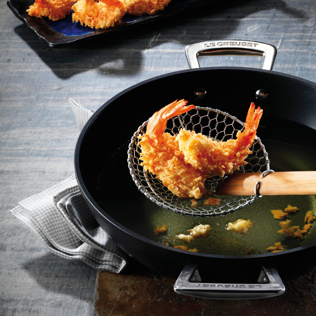 NEW from Le Creuset, their best-ever non-stick coating. Now 4 x stronger*, the new 3-layer reinforced non-stick coating on the inside of every Le Creuset Toughened Non-Stick is now even more durable and resistant to abrasion from metal utensils. The Toughened Non-Stick Shallow Casserole is perfect for everyday cooking for a variety of quick and tasty meals but is equally at home being taken straight from the hob to the table for an informal supper with friends. Toughened Non-Stick is a sleek range of versatile pans perfect for everyday use.