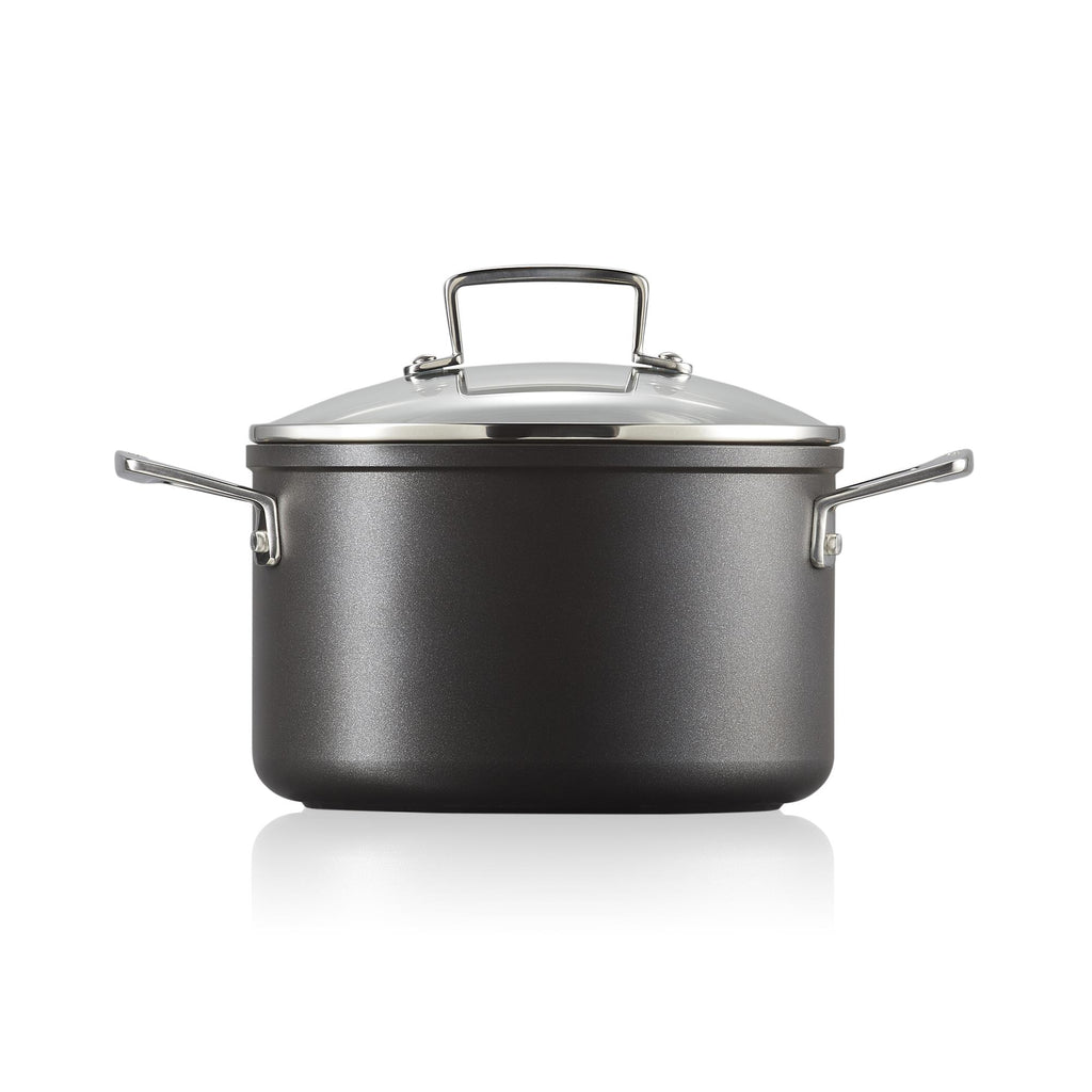- Tough, PFOA-free non-stick surface inside and out, and a special hardened body to create a durable and long-lasting pan that can be used on any heat source.