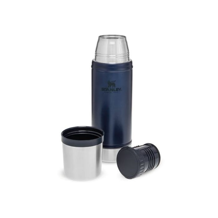 This rugged little tank of a bottle is built to stand up to drops, dents, and dings, all while preserving the thermal integrity of your favorite beverage. This legendary Stainless Steel vacuum bottle keeps .47L of your favorite drink hot or cold for 15hrs. The insulated lid also doubles as a cup for drinking.