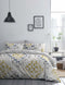 This stunning geometric pattern is a modern, contemporary design. The warm blues, greys and golds, as well as the hand-drawn feel of the design, add a sense of warmth to the overall feel, making this a welcoming and inviting piece.