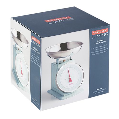 The Typhoon mechanical scales feature a large, clear and easy to read dial that can measure up to 4kg / 8lb and include a large stainless steel measuring bowl.