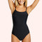 Four-way stretch water repellent fabric for a smooth fit over the body and full bottom coverage. *A built in shelf bra with removable pads is for size 13-14 only.
