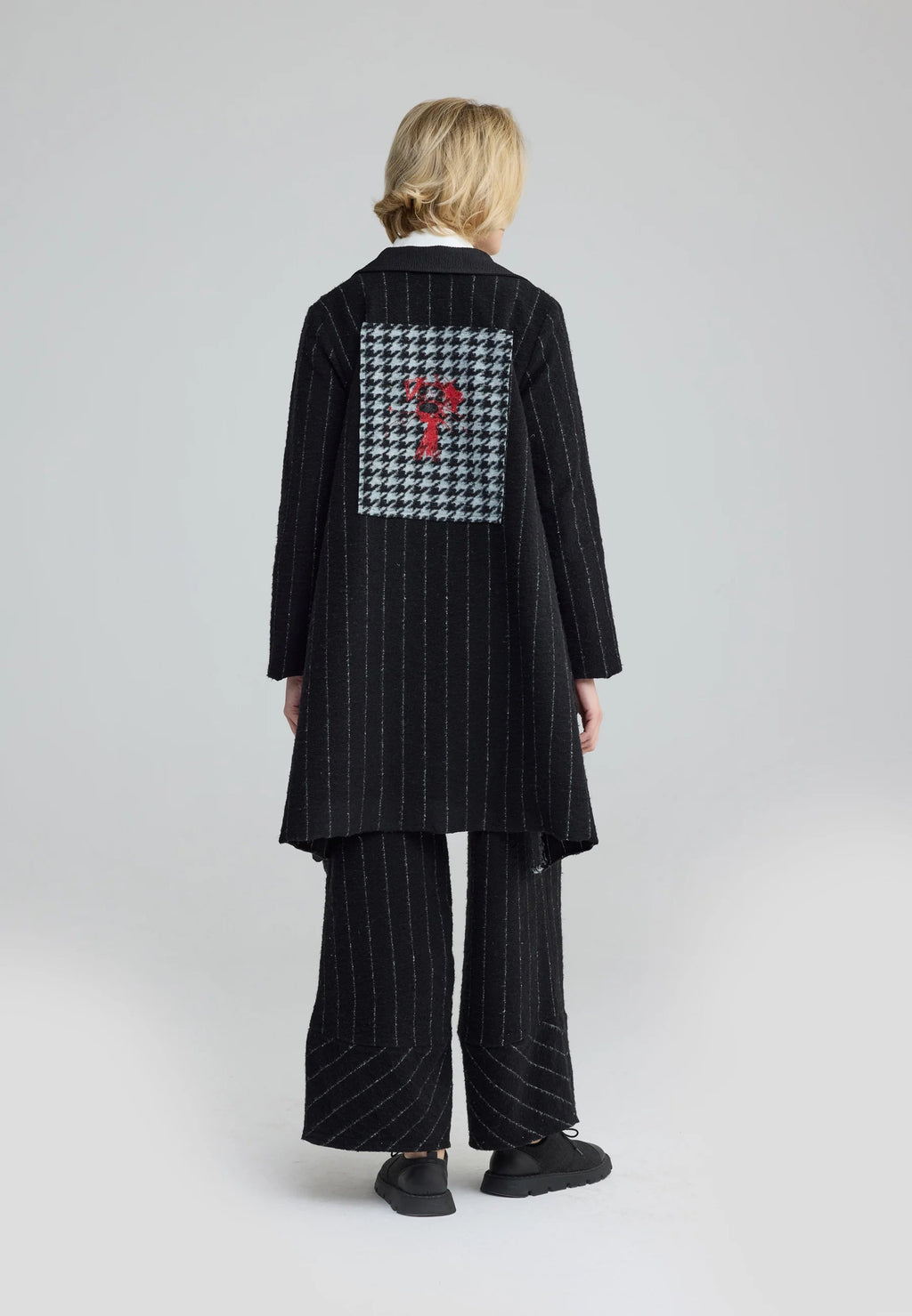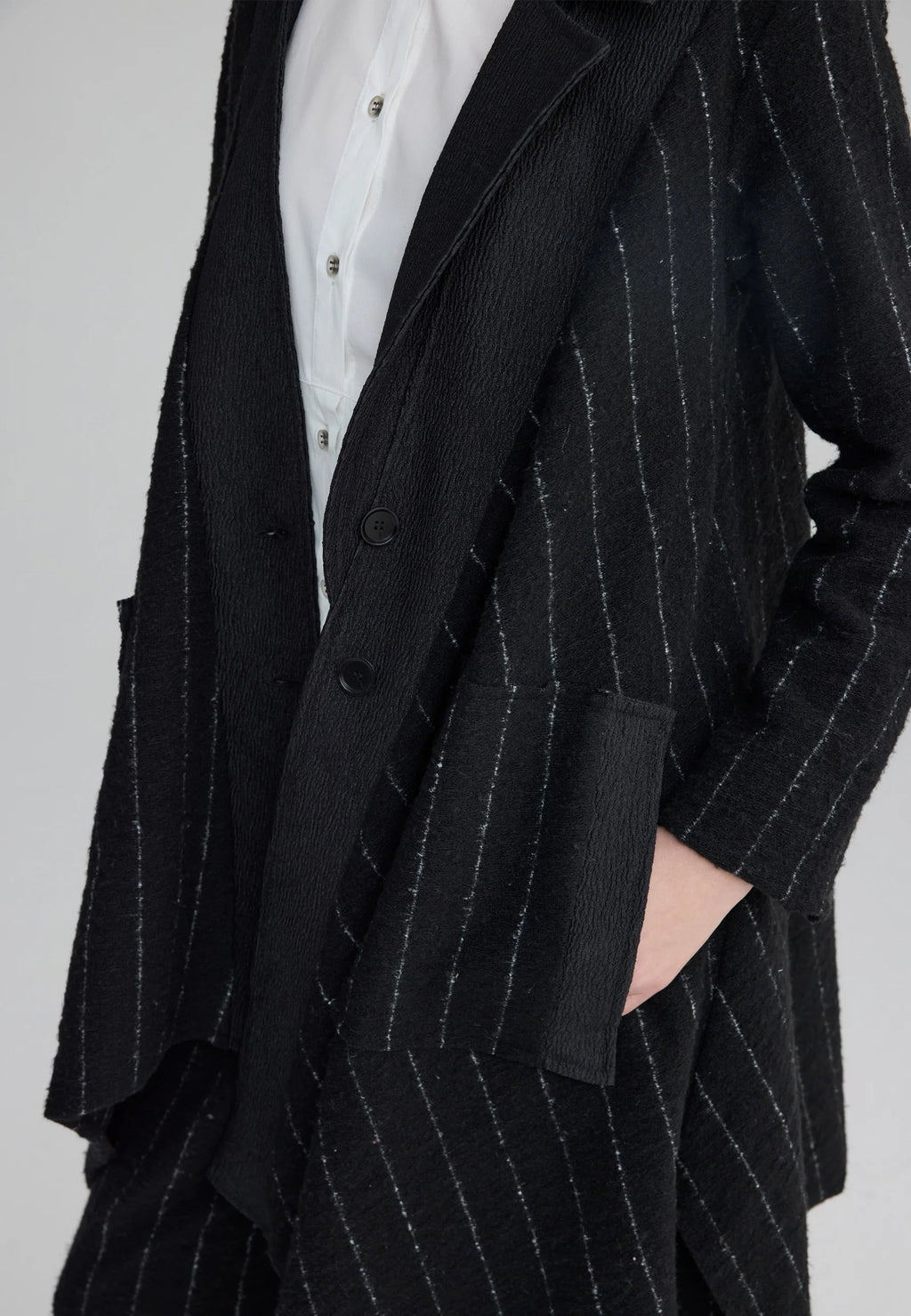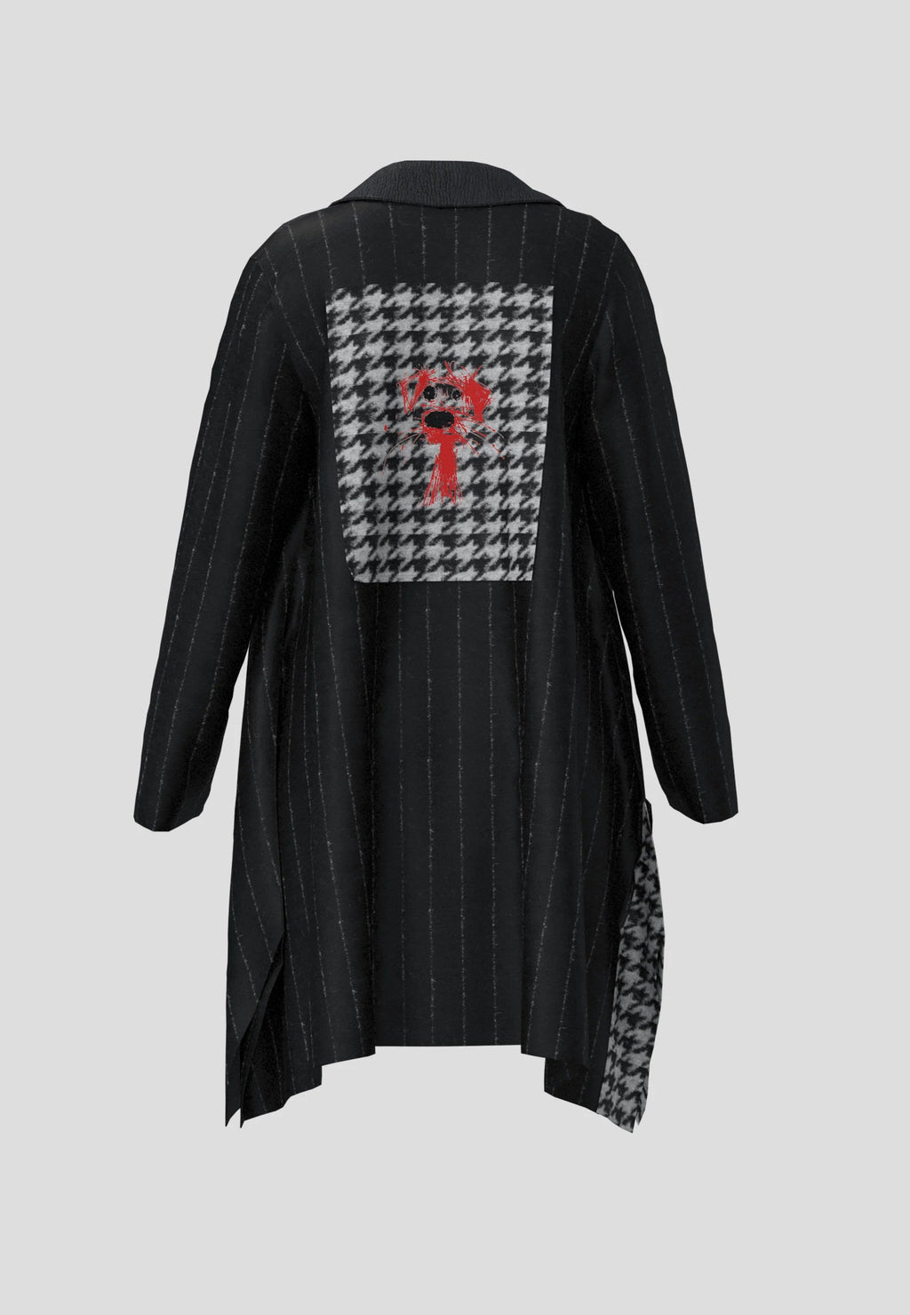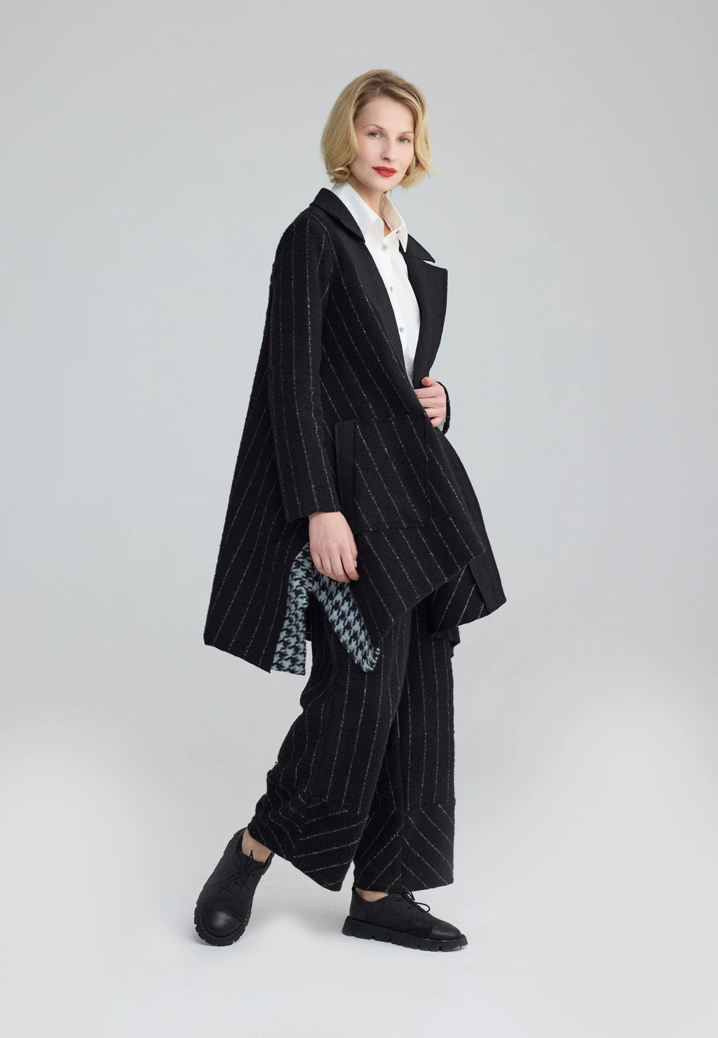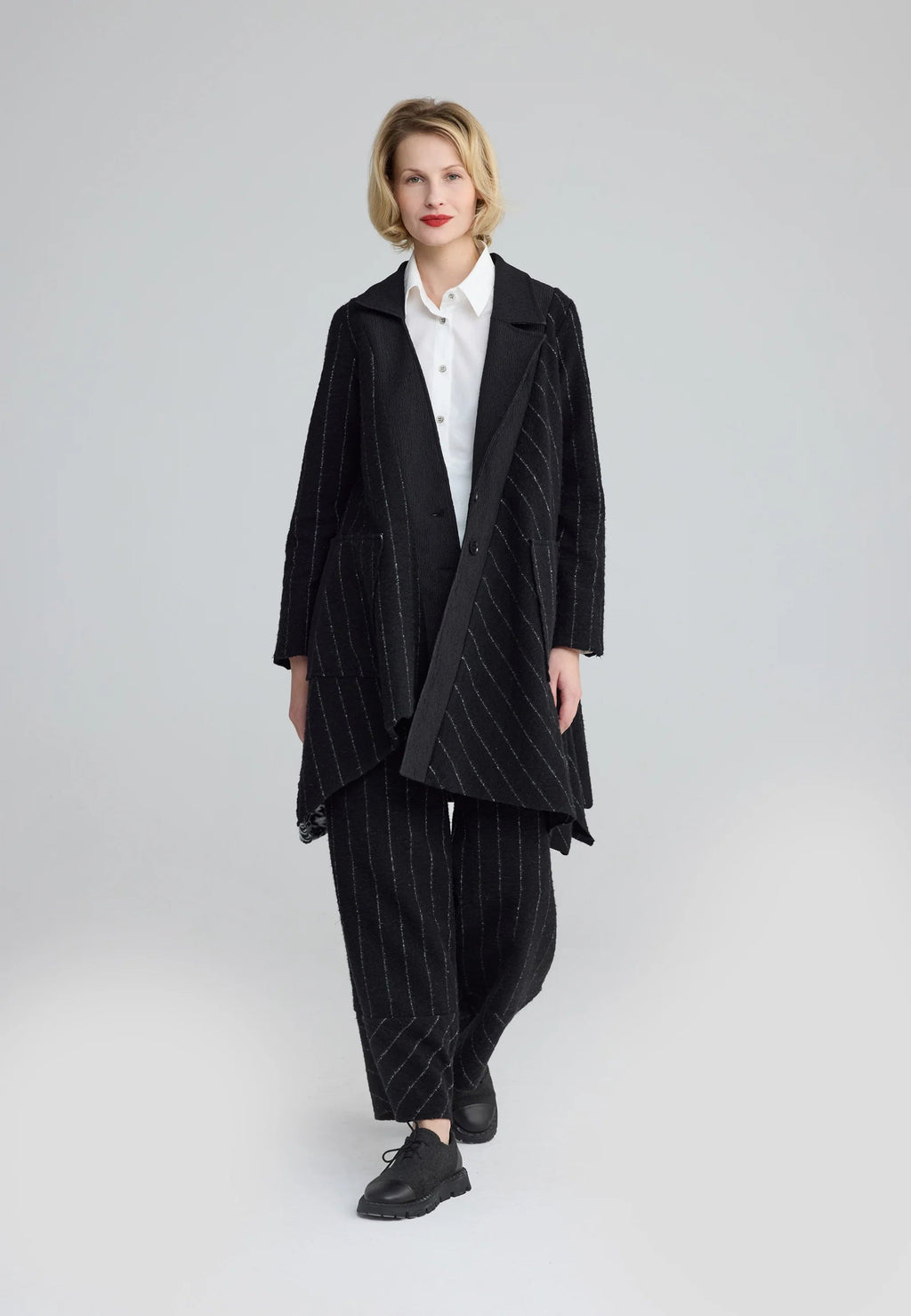 - Long jacket with a dramatic asymmetric hem and a beautiful "A" silhouette that widens towards the bottom