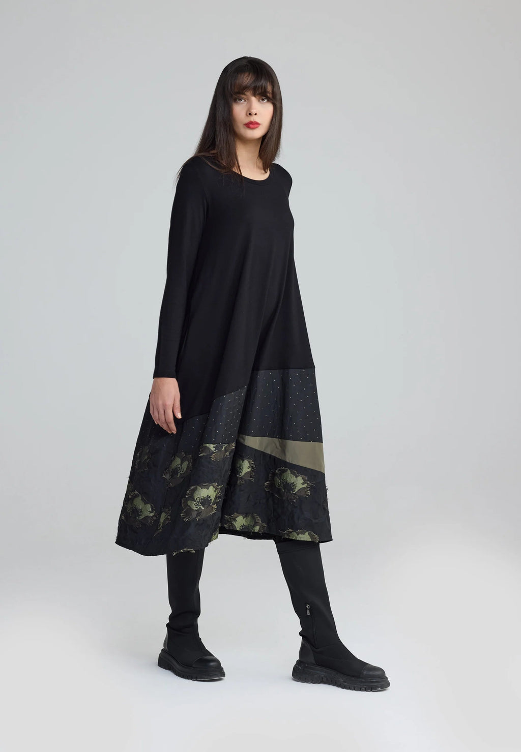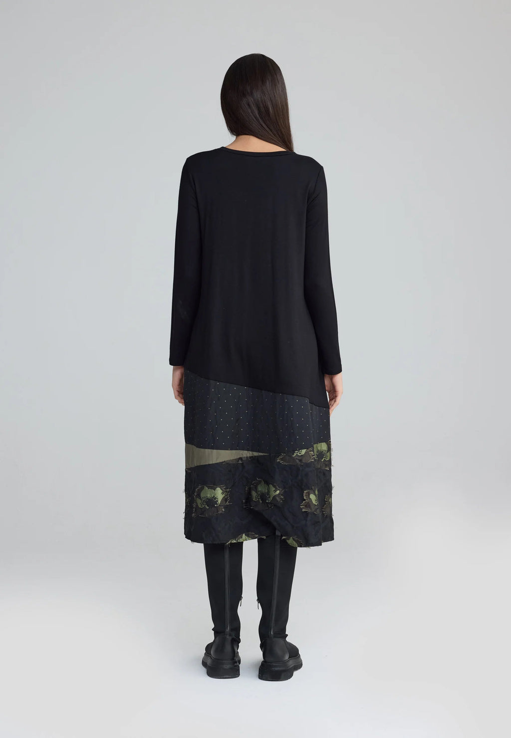 - Mixed-fabric dress crafted from viscose jersey and jacquard memory taffeta