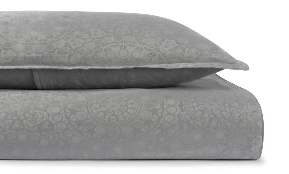 The Madrid duvet cover set is a charming example of understated sophistication. The elegant light gray tones are sharp yet inviting, and the intricate geometric design is exquisite in its subtle detail. All this understated grace is matched by the beautifully soft 300 thread count cotton sateen that simply adds to the sense of indulgent luxury.