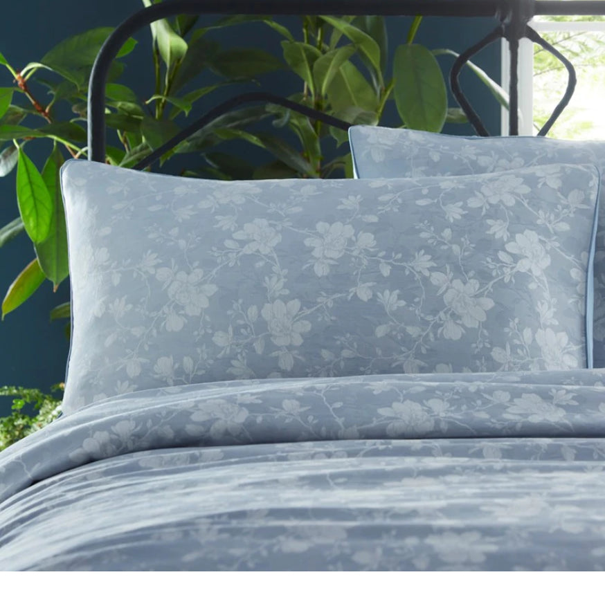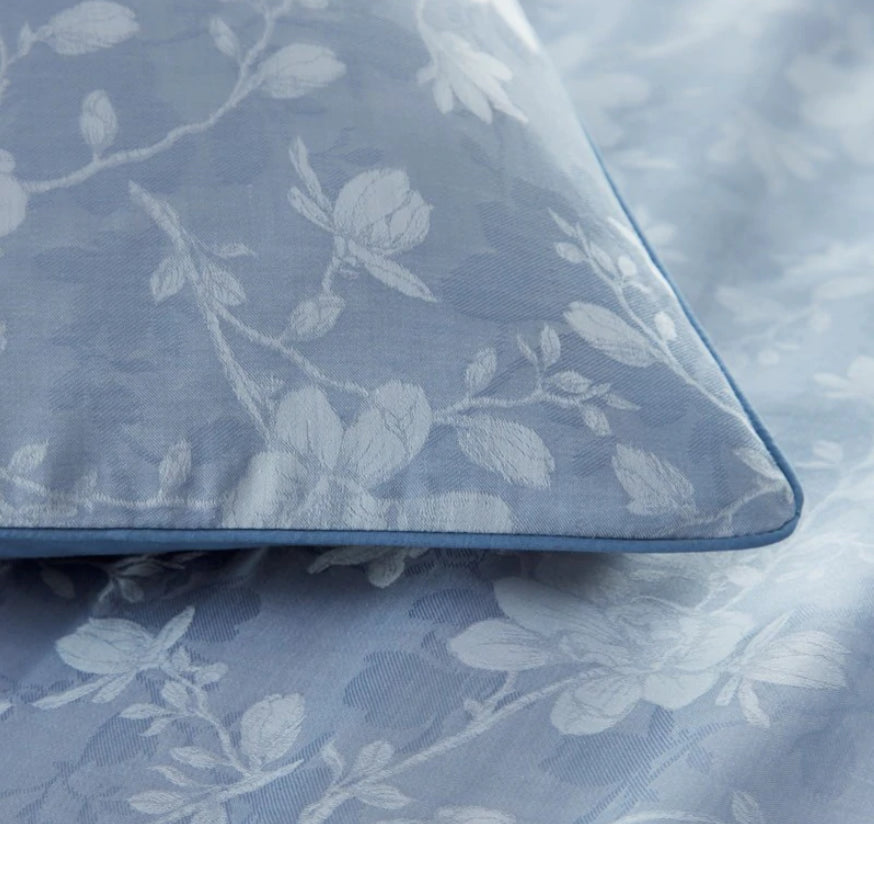 Nothing says Wedgwood like blue and white Jasperware. With its quintessentially English colour palette, this duvet set is woven in 100% cotton and encased by a delicate cord piping. A new take on an iconic design, this design includes two matching pillowcases that showcase the same exquisitely sculpted magnolia tree petals as the duvet cover. Available in double, king and super king sizes.