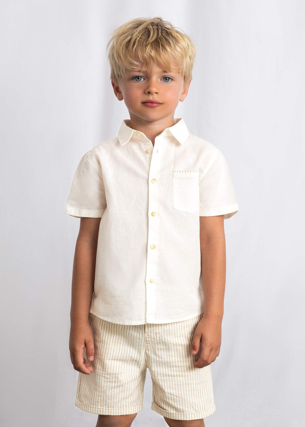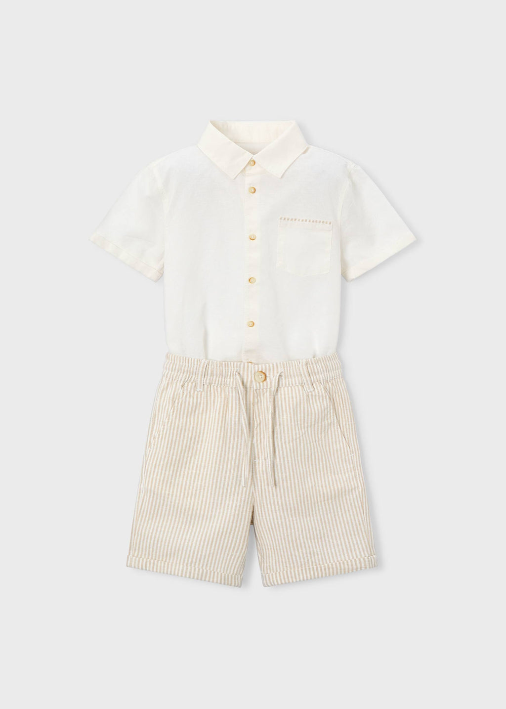 Linen Shirt & Bermuda Short Set - Oat Stripe