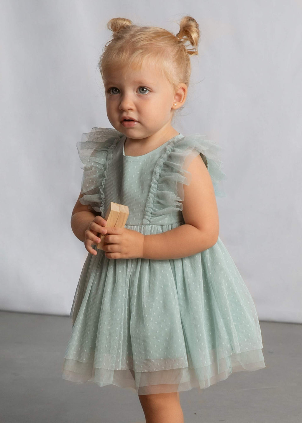 Dress: 100% Polyester; Lining: 85% Cotton, 15% Polyester