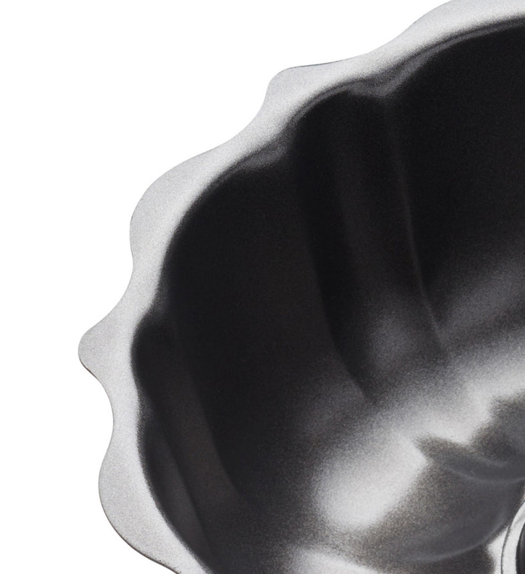 Manufactured from commercial-grade carbon steel, this fluted cake pan is also finished with a double non-stick coating. This ring cake pan measures 27 cm (10”) across, and 8 cm (3”) deep. The pan is also fridge and freezer safe, so it’s ideal for dishes that need to be set.