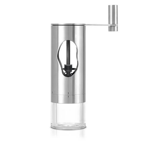 The body of the grinder is made from stainless steel and features a matching crank handle for easy use.