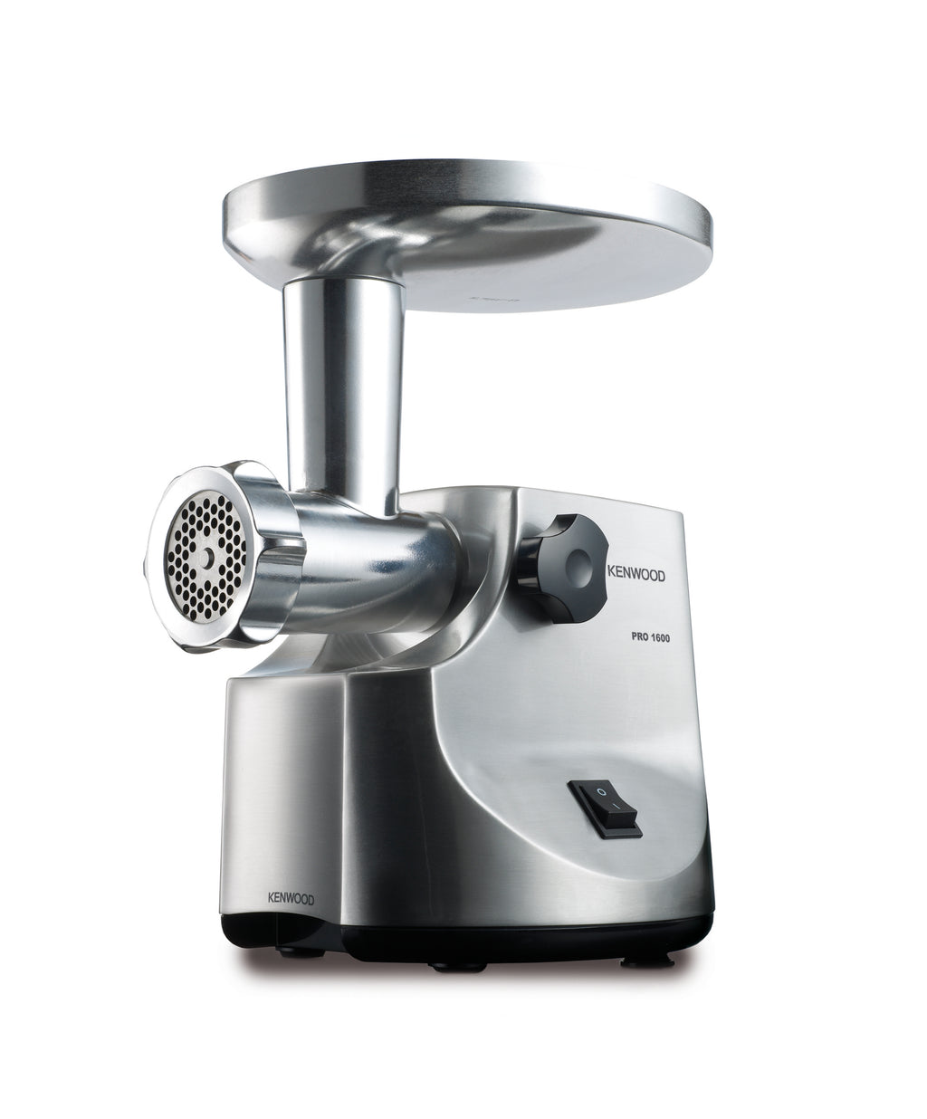 - Dies cast metal hopper with meat dish/dust cover.