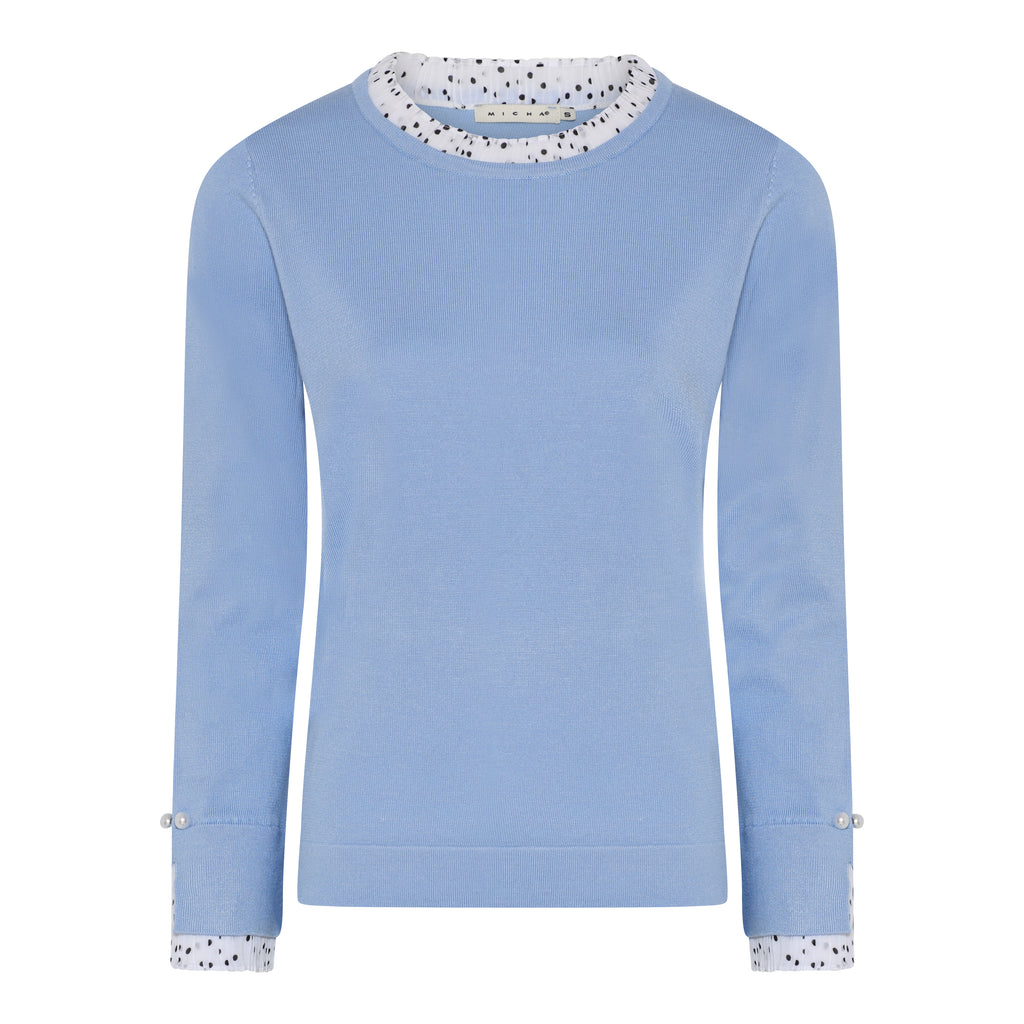 Contrast Collar Round Neck Jumper - Dream Blue