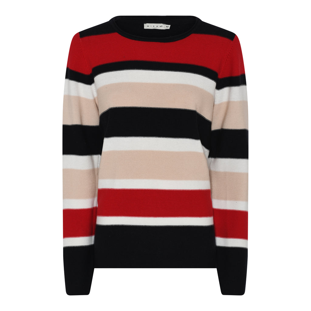 Round Neck Stripe Jumper - Navy/lipstick Red/sand