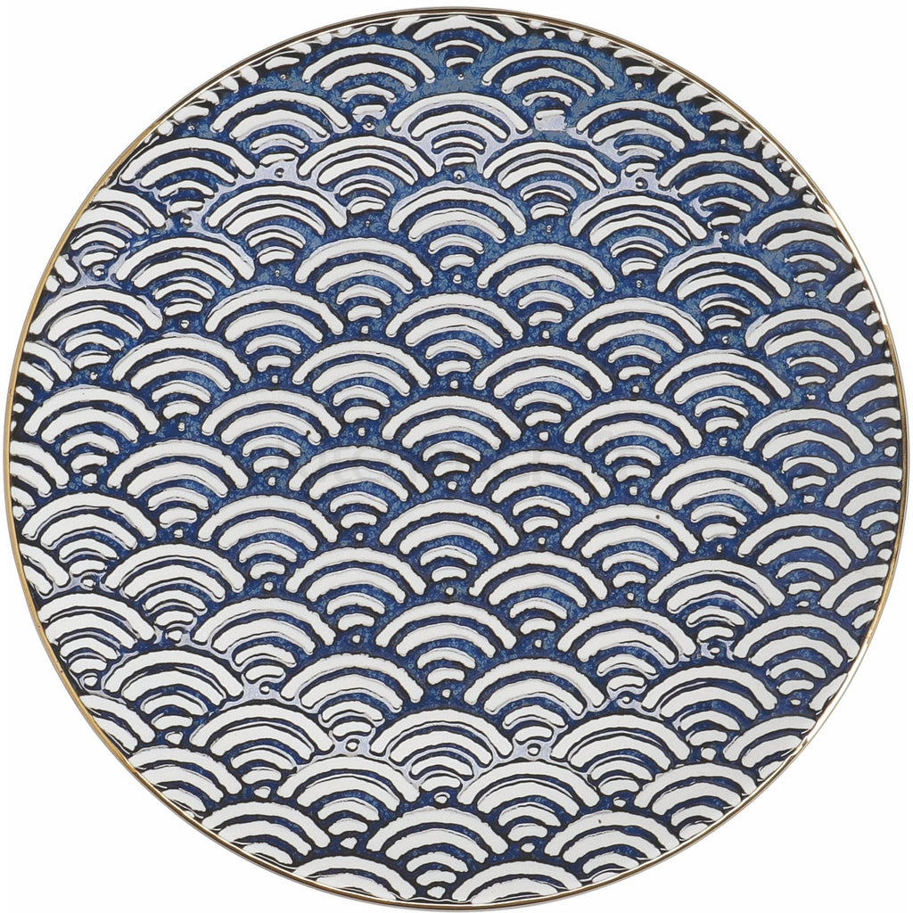 Seigaiha wave embossed pattern side plate with gold detail rim. Designed to mix and match within the collection.