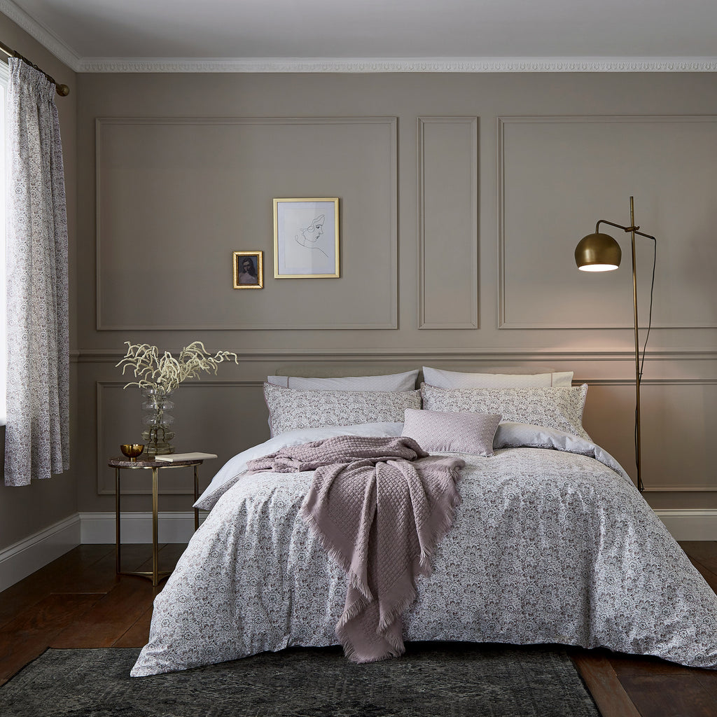 This richly intricate floral design is depicted in the delicatley understated tones of an amethyst colourway, the two features combining to produce a delightfully calming yet arresting piece. The subtle colours are matched by the softness of the 100% cotton, making this duvet cover one you will look forward to enjoying.
