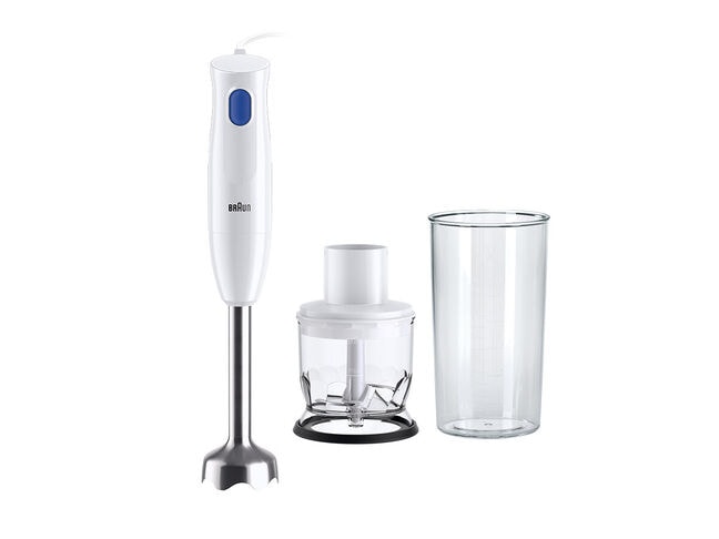 Discover the new simplicity of lightness with Braun’s lightest hand blender: the new MultiQuick 1. One touch is all it takes. Designed for easy blending, the 1-speed control button is perfectly positioned for simple usability. Simply click and hold to blend smoothies, desserts, and delicious sauces – with minimum effort!