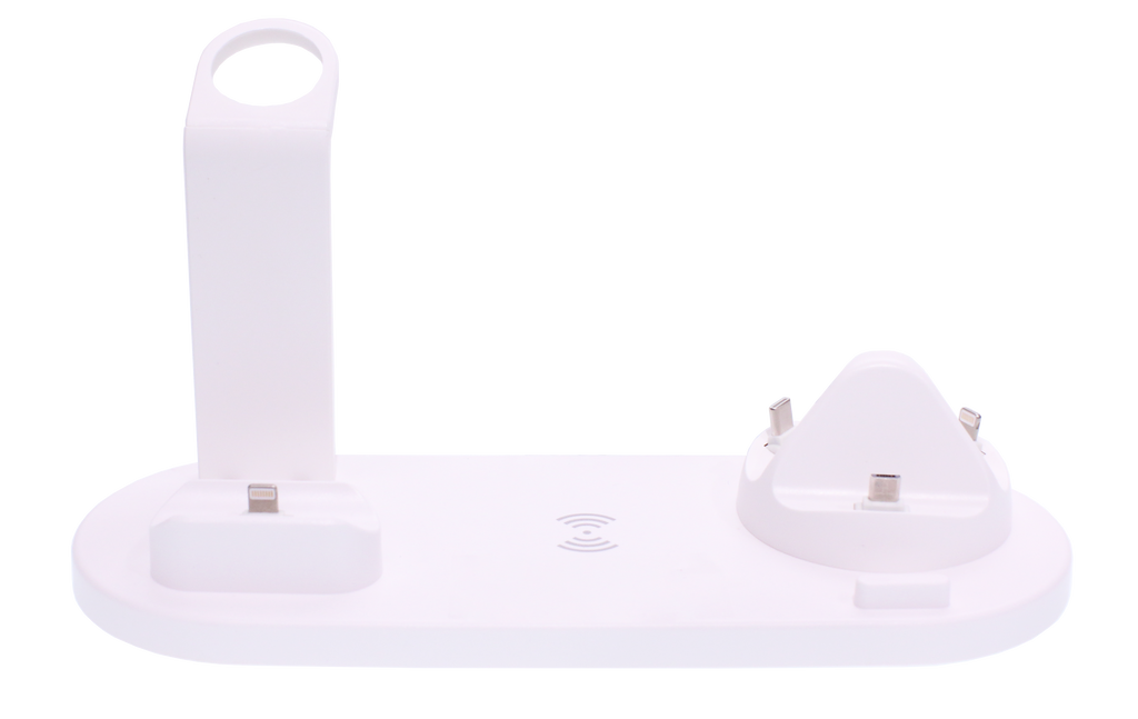 Rotatable Charger Dock with iPhone, android, and C-Type Adaptors. Charges your phone, watch, and airpods simultaneously.
