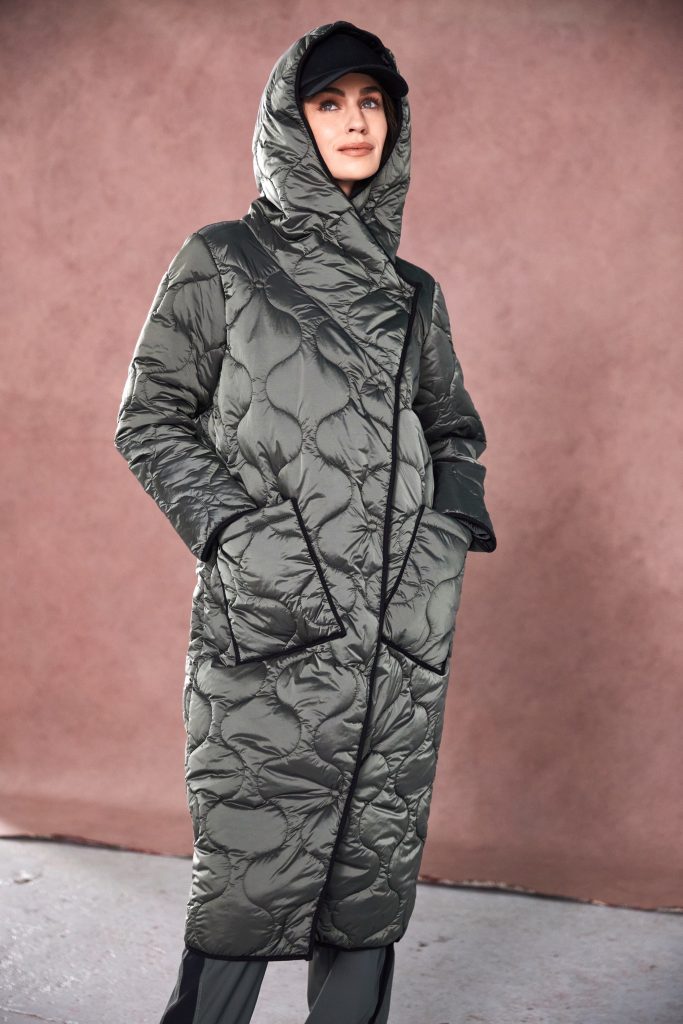 Contrast Lining Padded Coat - Forest/black