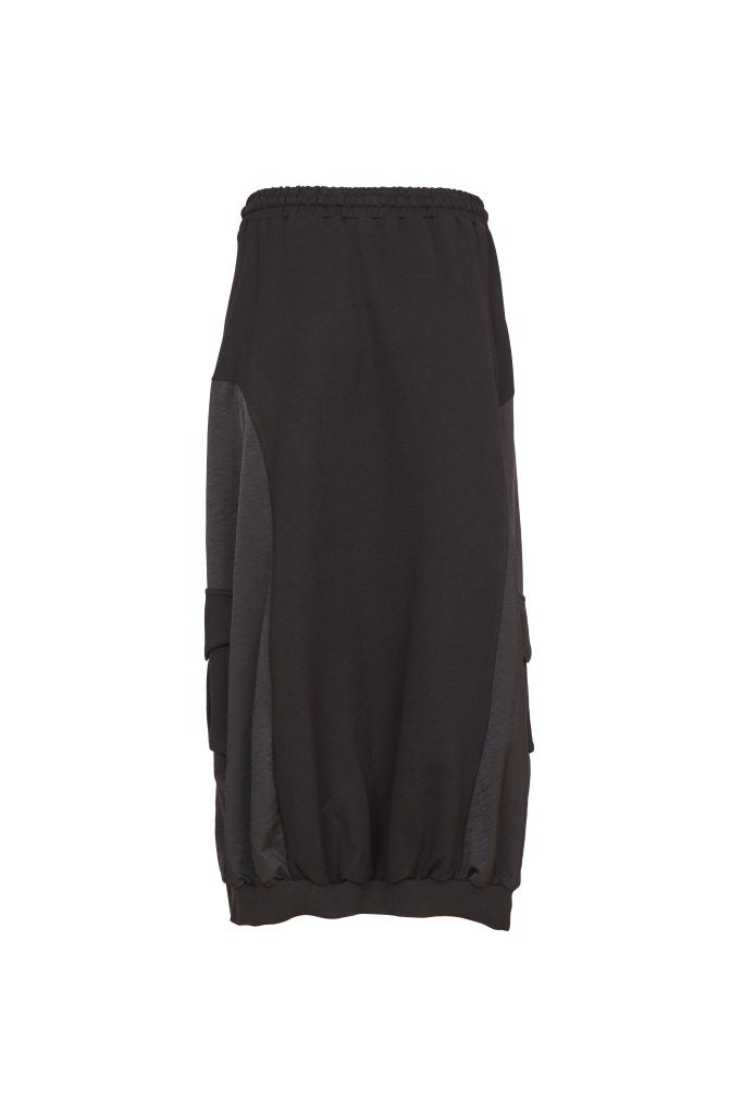Contrast Pockets Drawstring Skirt - Black