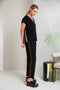 Contrast Ribbon Trim Seam V Neck Top - Black & Cocoa