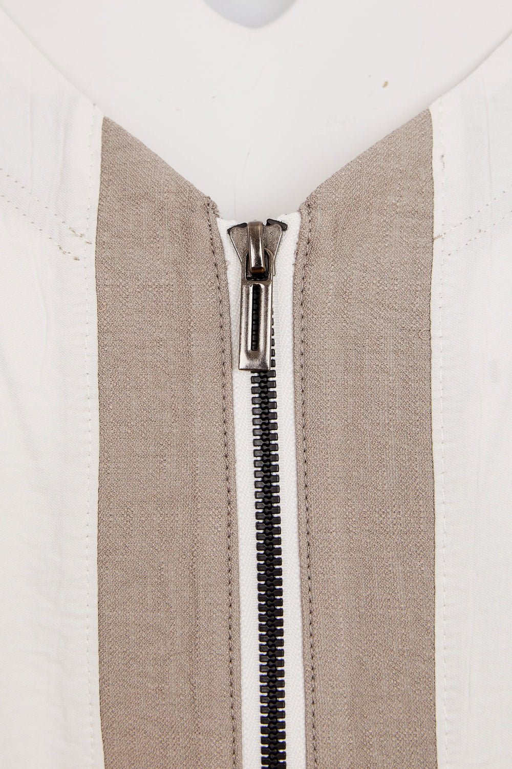 Contrast Zip Panels V Neck Top - Pebble