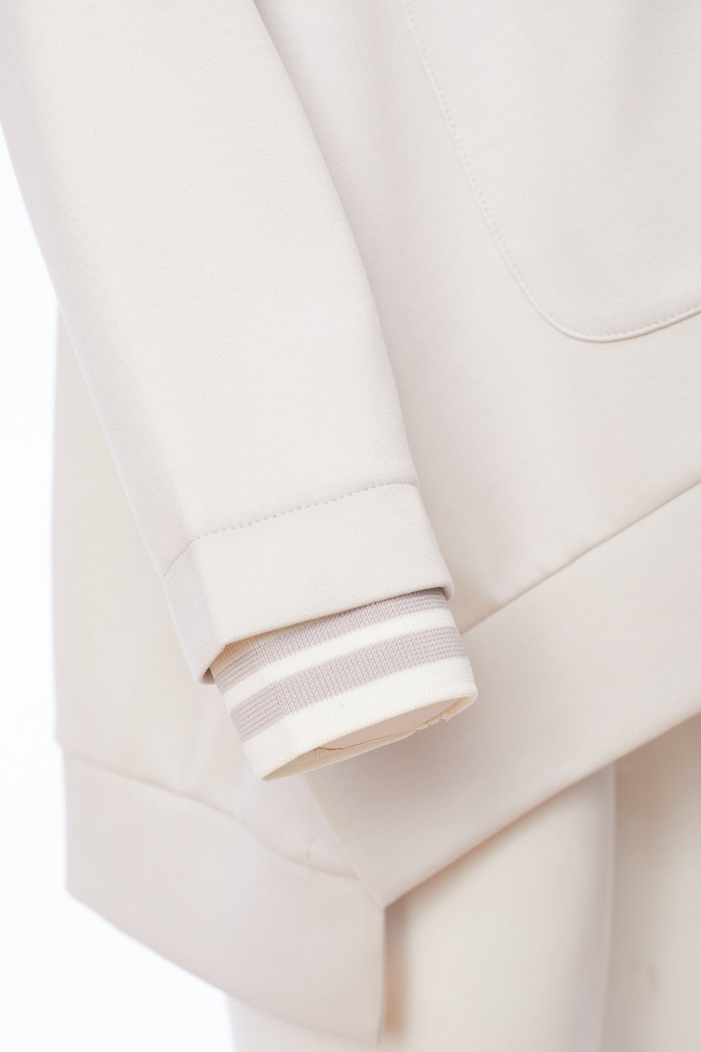- Stripe trim on collar and cuffs.