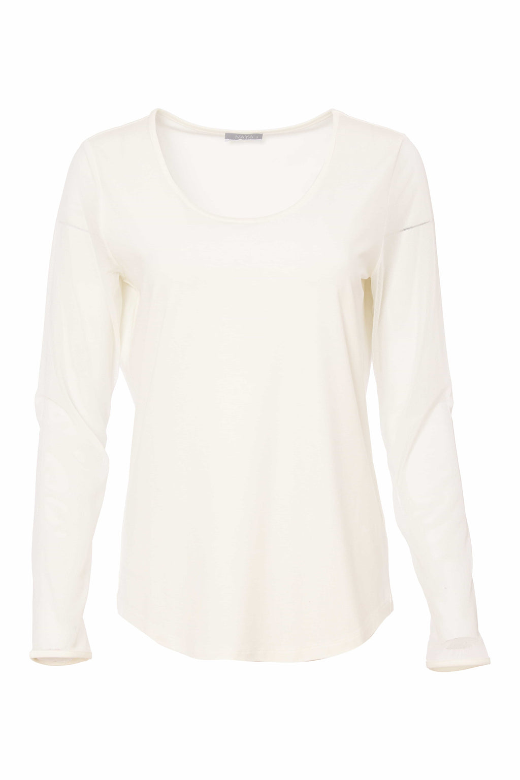 Mesh Sleeve Jersey Round Neck Top - Cream